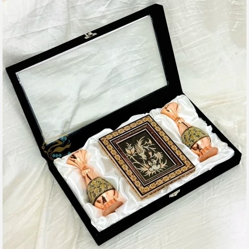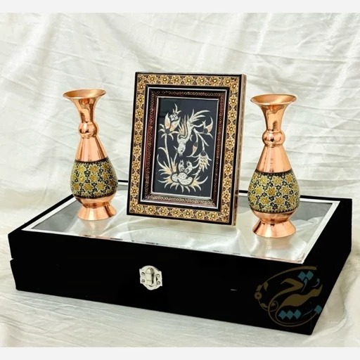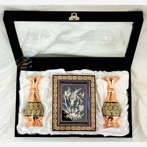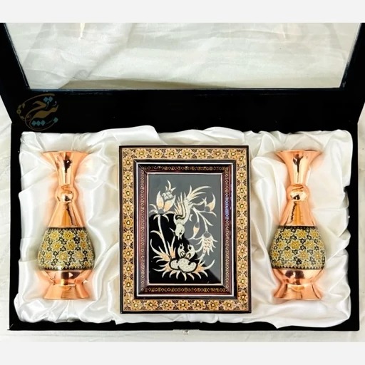 پک هدیه صنایع دستی گلدان خاتم کاری و تابلو