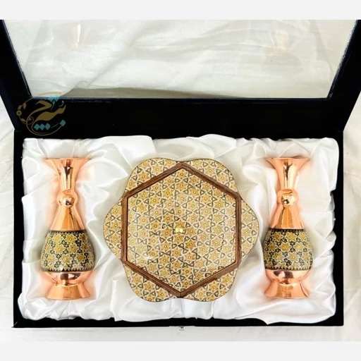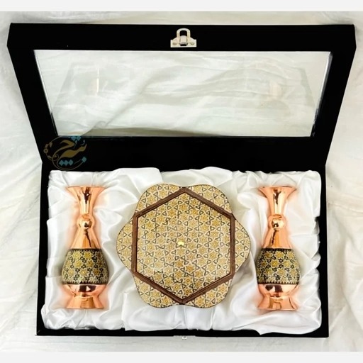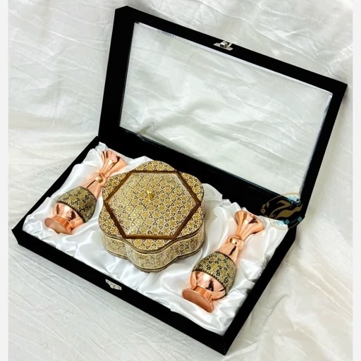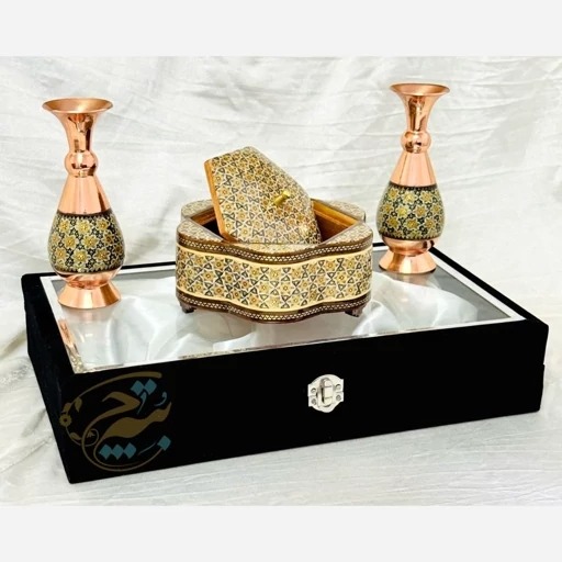 پک هدیه خاتم کاری گلدان 16 و شکلات خوری