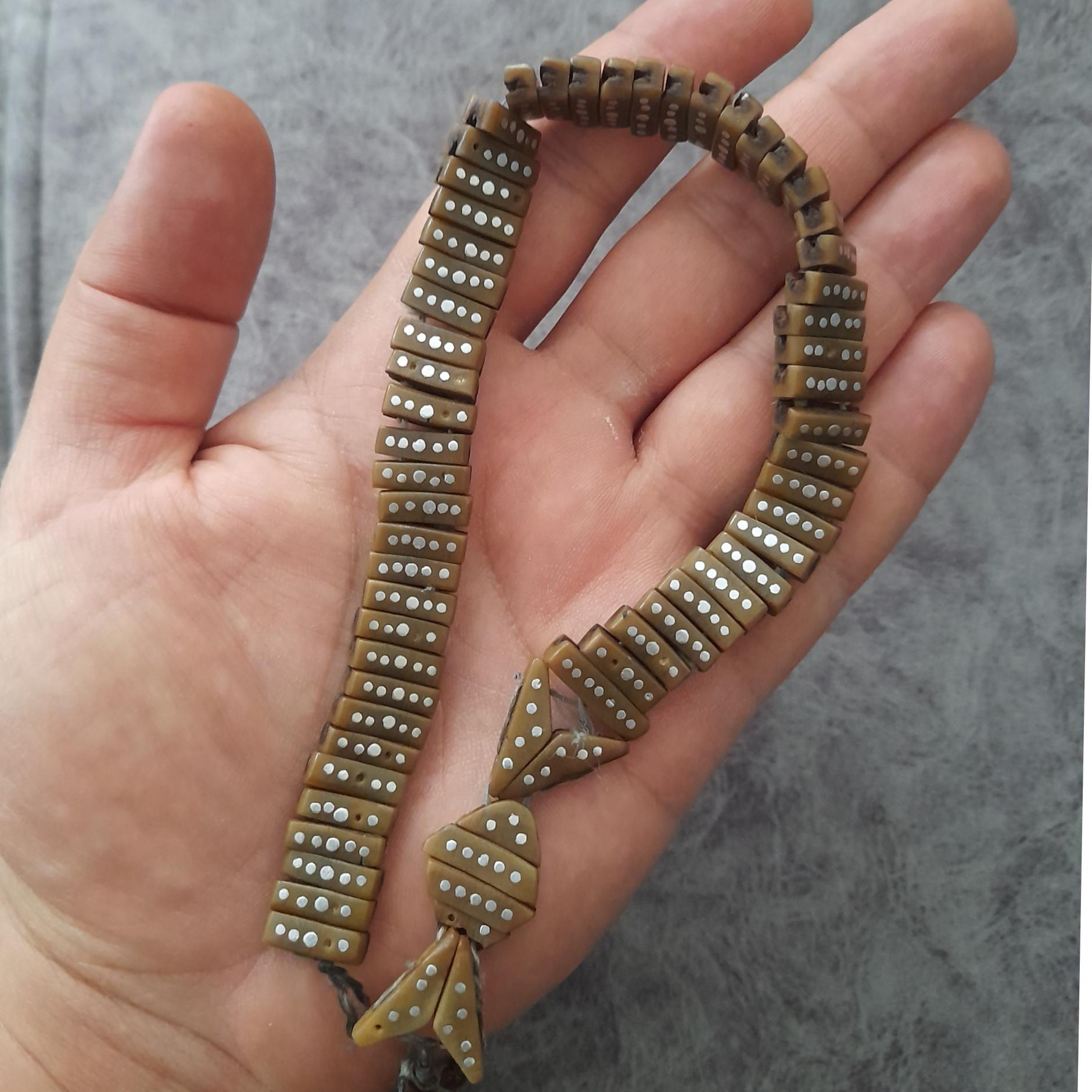 تسبیح دست سازه حصته خرما نقره کوب زیبا و کلکسیونی چنتایی ریختگی داره نقرها