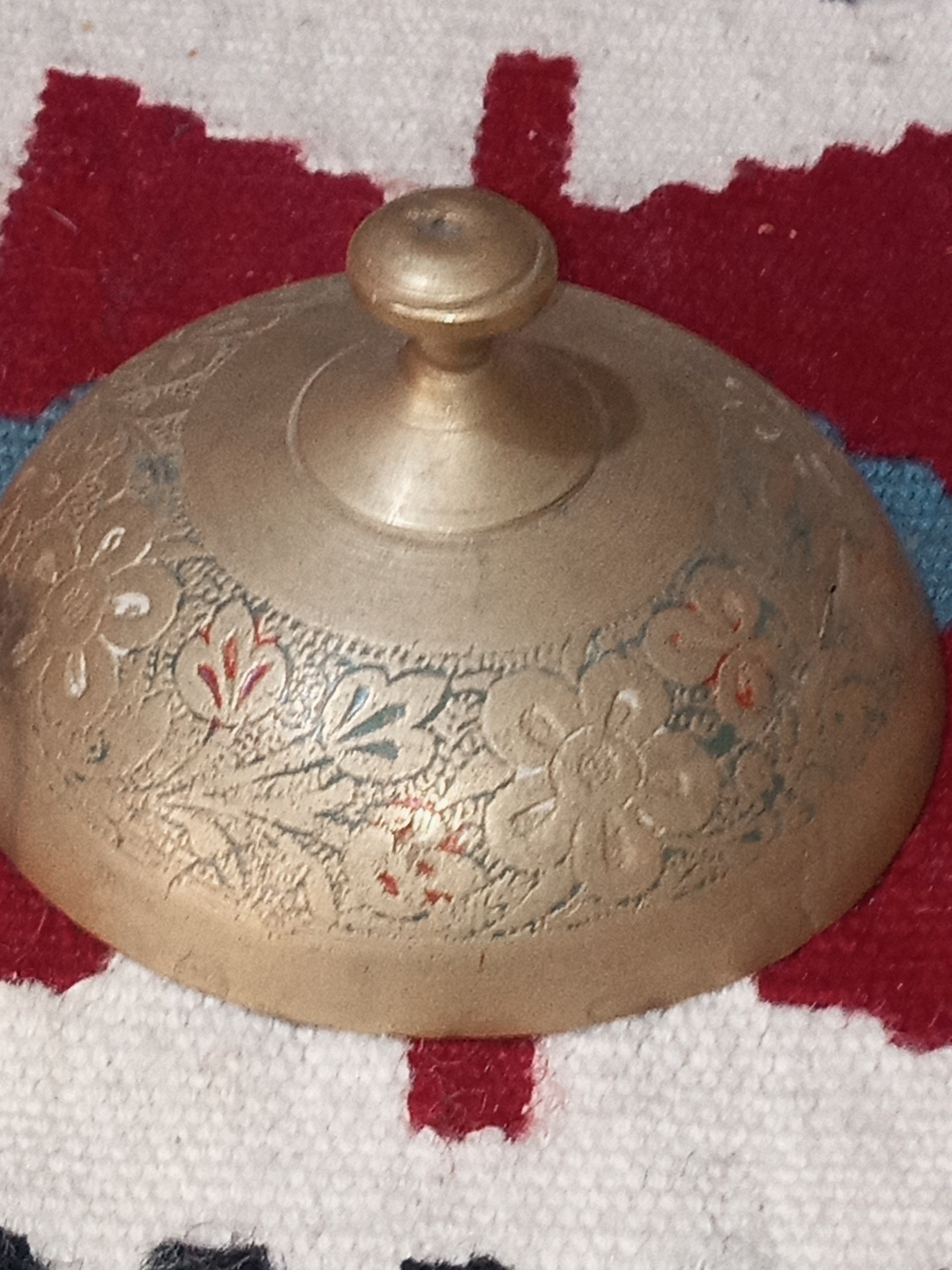 درپوش برنجی بسیارقدیمی میناکاری قطر10/5سانت