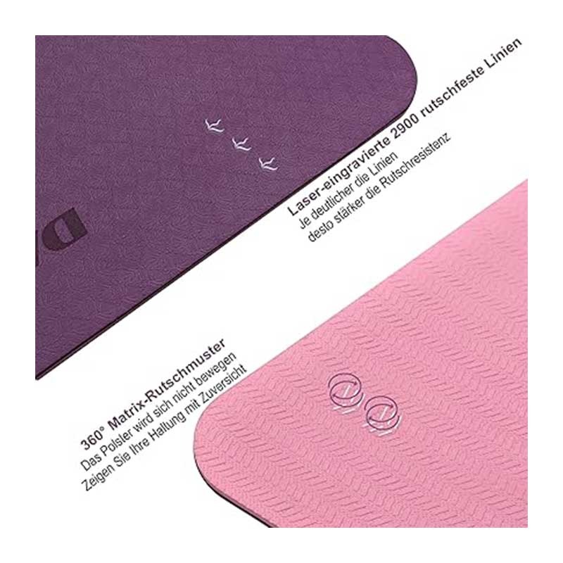 مواد دوستدار محیط زیست: این تشک یوگا از مواد TPE (ترموپلاستیک الاستومر) ساخته شده که فاقد سموم، بوی نامطبوع، PVC، لاتکس و مواد شیمیایی مضر است. این مواد بهبود یافته و مقاومتر در برابر پارگی است و قابل بازیافت است.