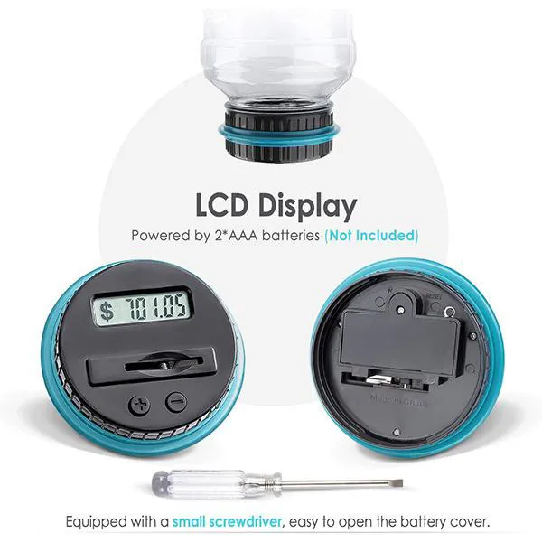 (طراحی شده برای همه سکه های ایالات متحده) ظرفیت بزرگ تا 1.8 لیتر، ظرف شمارش دیجیتالی پول می تواند 800-1000 سکه را ذخیره کند. بانک شمارش دیجیتال سکه تمام سکه های ایالات متحده را می پذیرد و با 2 باتری AAA (شامل نمی شود) تغذیه می شود.