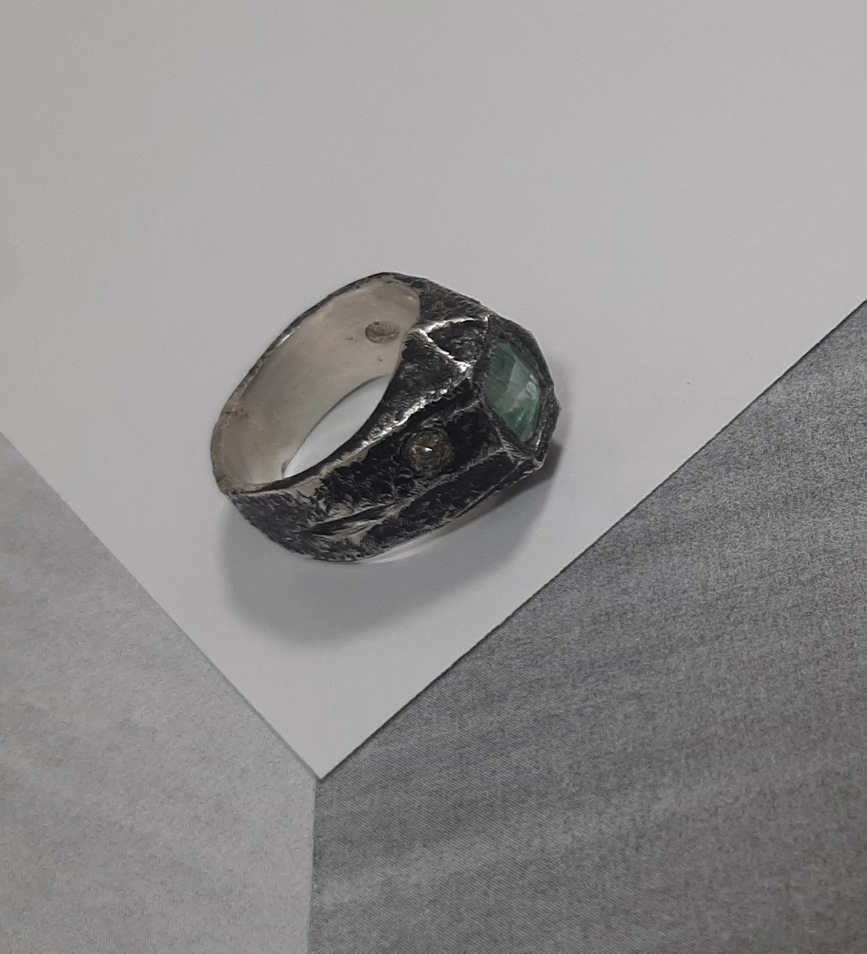 دارای دو نگین یک زمرد به وزن 3 قیراط که به عنوان سیاره زمین در نظر گرفته شده و یک نگین الماس طبیعی که به عنوان سیارک ماه در نظر گرفته شده است.