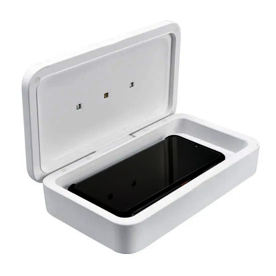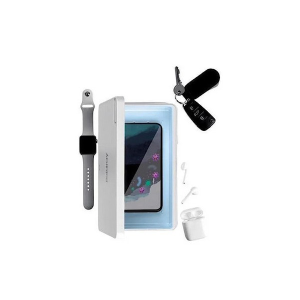 شکسته و آن ها را از بین ببرد. با قرار دادن دیوایس ها و لوازمی مانند گوشی، هندزفری، دسته کلید، کیف پول، عینک و و بستن درب و روشن کردن دستگاه، اشعه ماوراء بنفش شروع به تابیدن به این وسایل می کند و ظرف مدت 5 دقیقه انواع آلودگی ها، ویروس ها و را از روی آن ها نابود