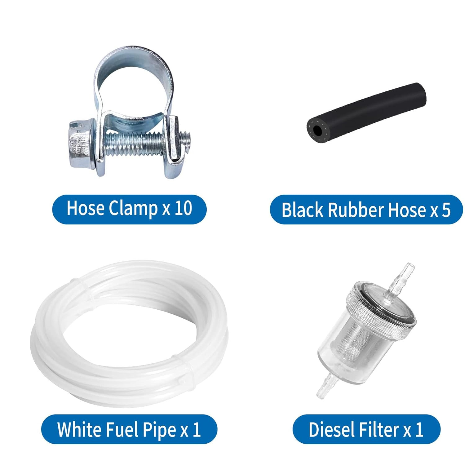 (بسته شامل): 1 عدد لوله سوخت، 1 عدد فیلتر سوخت دیزل، 5 عدد شلنگ اتصال سوخت، 10 عدد گیره شیلنگ.