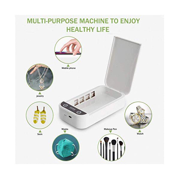 - این ضدعفونیکنندهی گوشی با اشعهی فرابنفش با اندازهی بزرگ و در عین حال جمعوجور و ظرفیت آبجو، برای گوشیهای تلفن همراه تا 6.5 اینچ و همچنین هدفون، جواهرات، کیف پول، کارتهای اعتباری، کلید ماشین یا هر وسیلهی دیگری مناسب است. از نوشیدن یک فنجان قهوه لذت