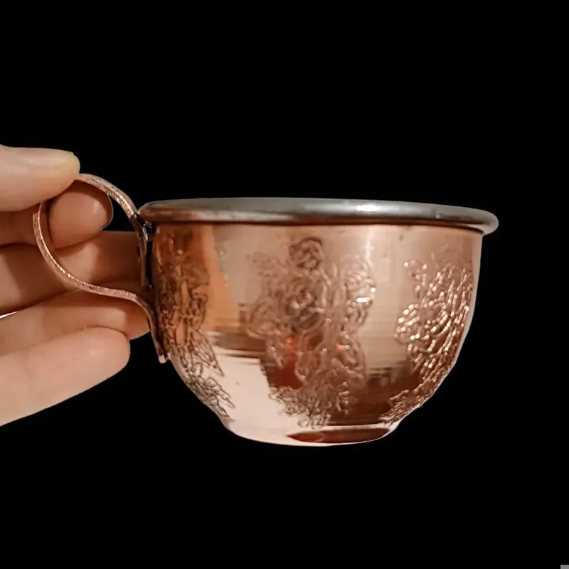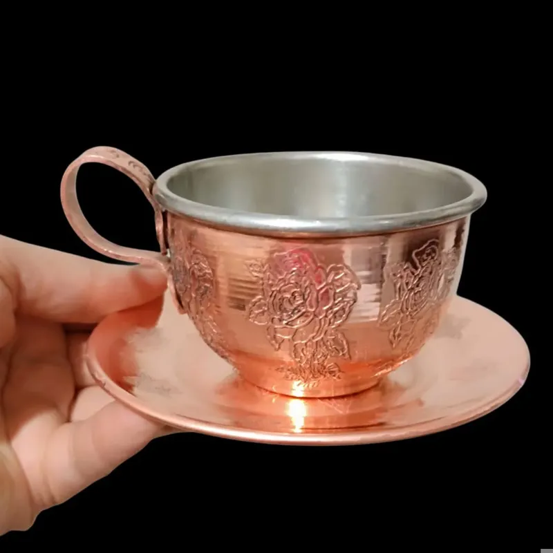 فنجان نعلبکی مسی نو باطرح قلم گل