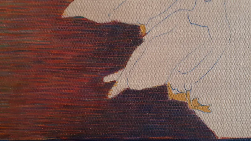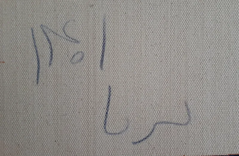 نقاشی رنگ روغن مدادرنگی روی پارچه بوم بدون زوار، حدود ابعاد با احتساب کادر:17×25، پشت تاریخ و امضا