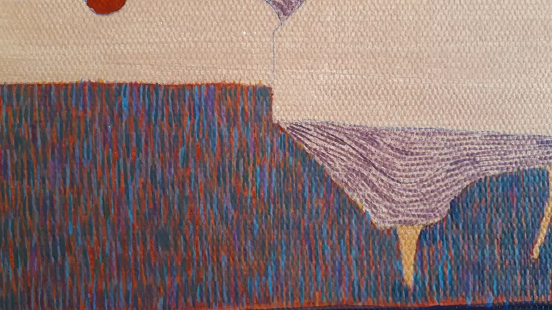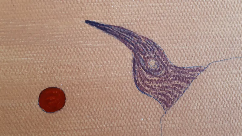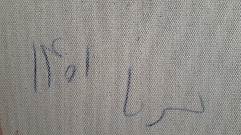 نقاشی رنگ روغن مدادرنگی روی پارچه بوم بدون زوار، حدود ابعاد با احتساب کادر:17×25، پشت تاریخ و امضا