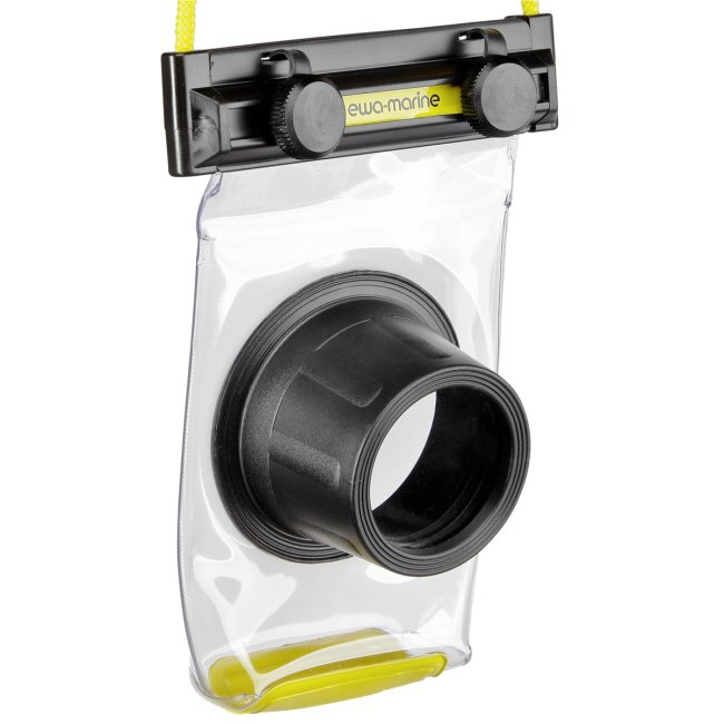 - مانند همه محفظههای ewa-marine، 3D-S دارای یک جفت ریل گیره ضد خوردگی و مقاوم در برابر آب دریا است که برای آببندی کامل به هم متصل میشوند. آنها توسط دو پیچ محکم میشوند. همچنین یک بند حمل قابل تنظیم و کاربردی روی ریل گیره وجود دارد.