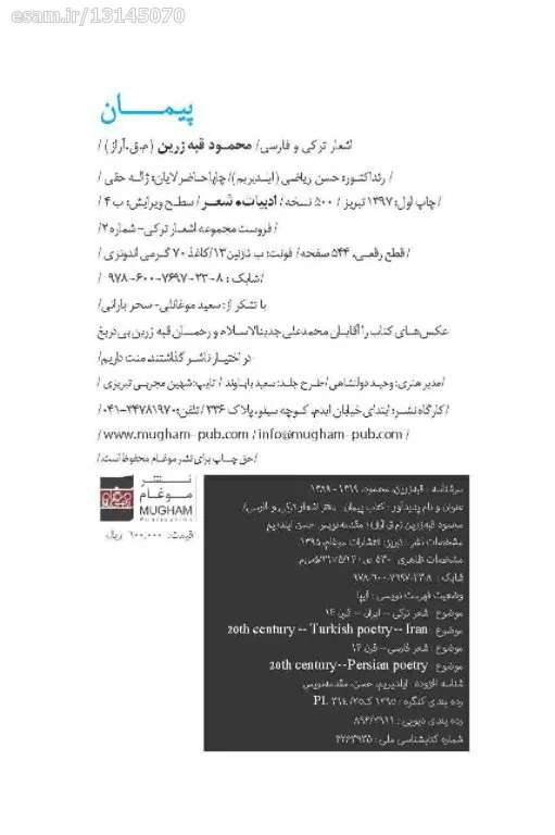 پیمان. اشعار ترکی و فارسی محمودقبه زرین
