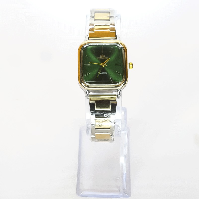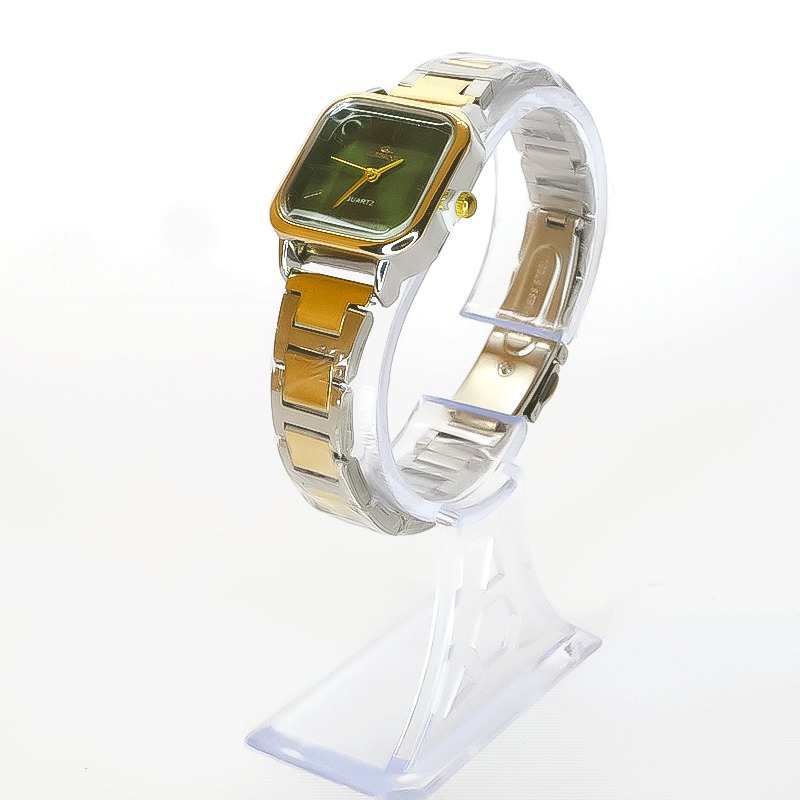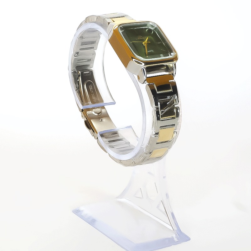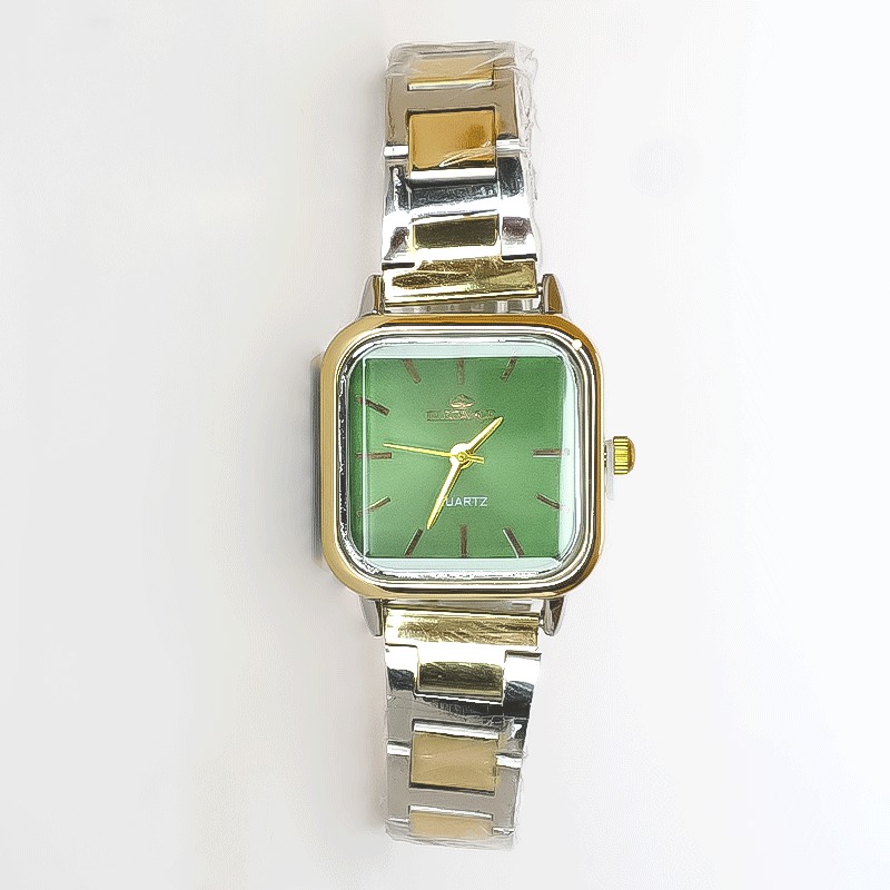 ساعت Elegance با صفحه سبز و بند دو رنگ، ظاهری کاملاً زنانه و لوکس دارد: