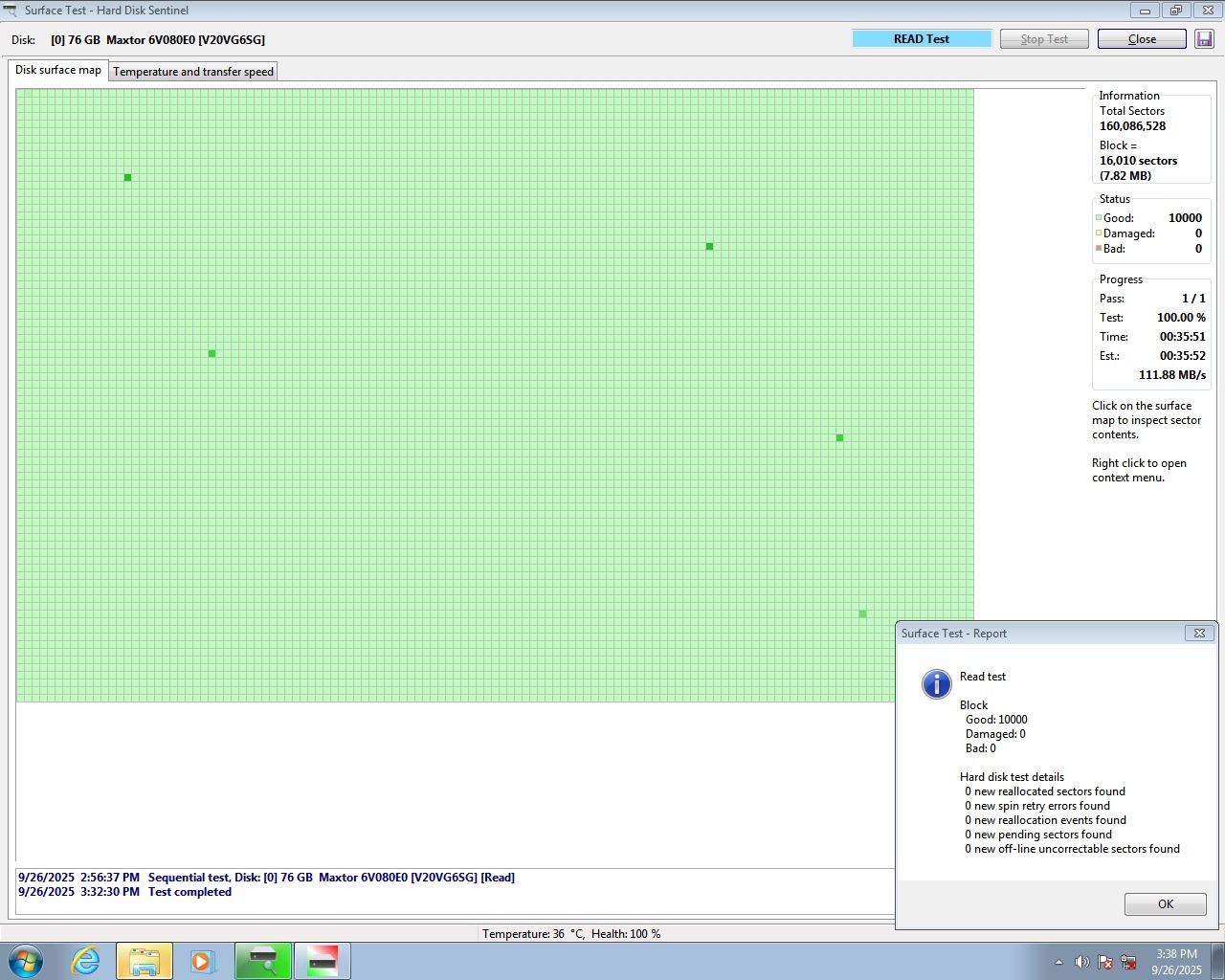بدسکتور ندارد(عکس چهارم).با HDD Regenerator تست شده است.
