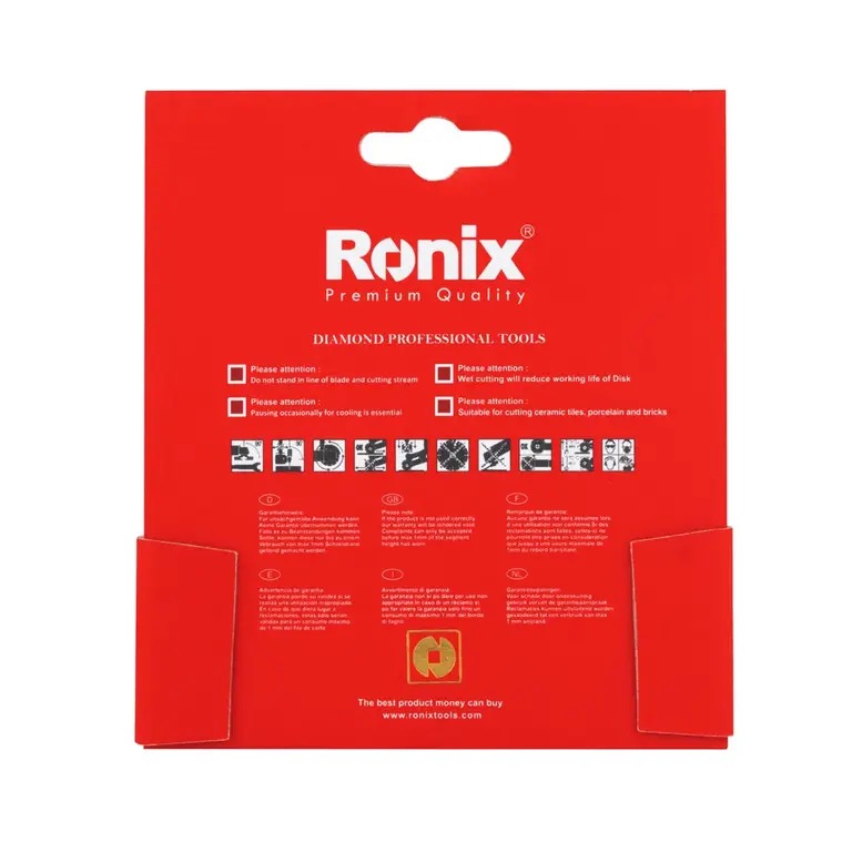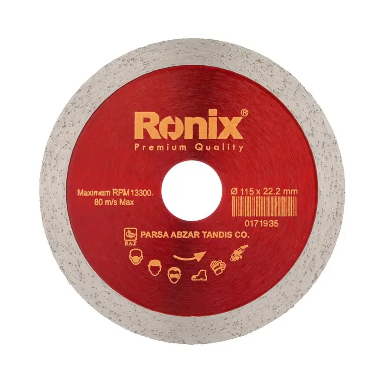 برای ایجاد برشی سریع و دقیق روی سرامیک باید صفحه برشی در اختیار داشت که ابعاد آن مطابق با استانداردهای جهانی تنظیم شده باشد. این صفحه سرامیکبر رونیکس دارای قطر 115 میلیمتری، ارتفاع سگمنت 10 میلیمتری و قطر سوراخ وسط 22.2 میلیمتری است. تمام این موارد، در کنار سرعت چرخشی بالغ بر 13300دور در دقیقه این صفحه سرامیکبر را به عنوان محصولی نمونه به بازار ابزار ایران و جهان معرفی کرده است.