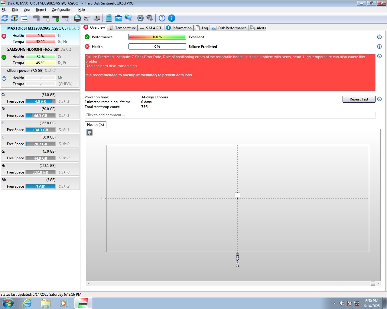 هارد Maxtor STM3320820AS ساتا 320GB سلامت 0%