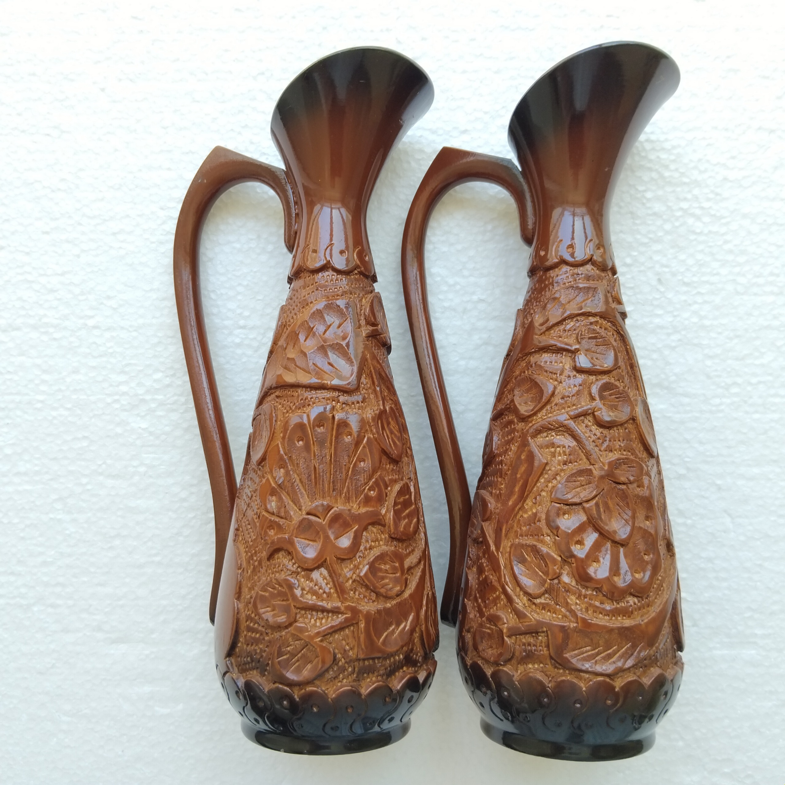 جفت پارچ چوبی کنده کاری شده قدیمی دکوری