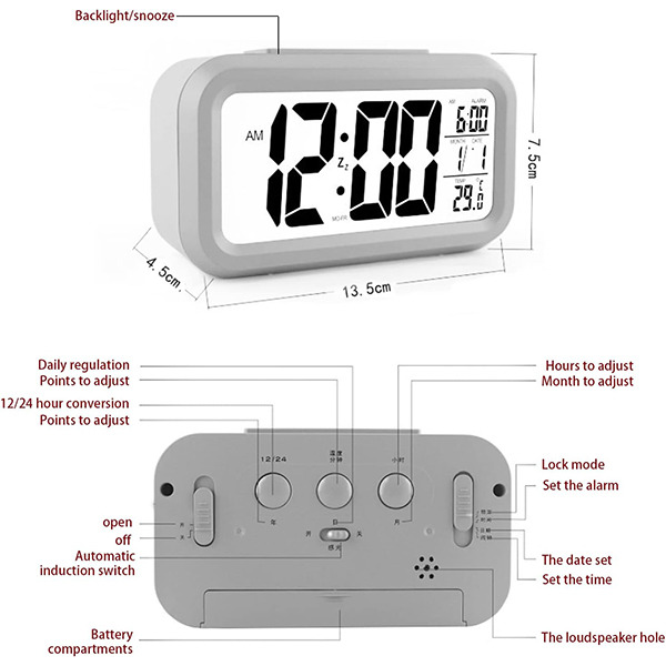 (درباره باتری): از آنجا که توان مورد نیاز ساعت زنگدار خود ضعیف است، یک باتری کربنی معمولی با جریان کم در انتخاب باتری انتخاب میکنید. استفاده از باتری قابل شارژ یا باتری قلیایی با کارایی بالا میتواند باعث شود ساعت زنگدار از ظرفیت شارژ فراتر رود. عمر مفید