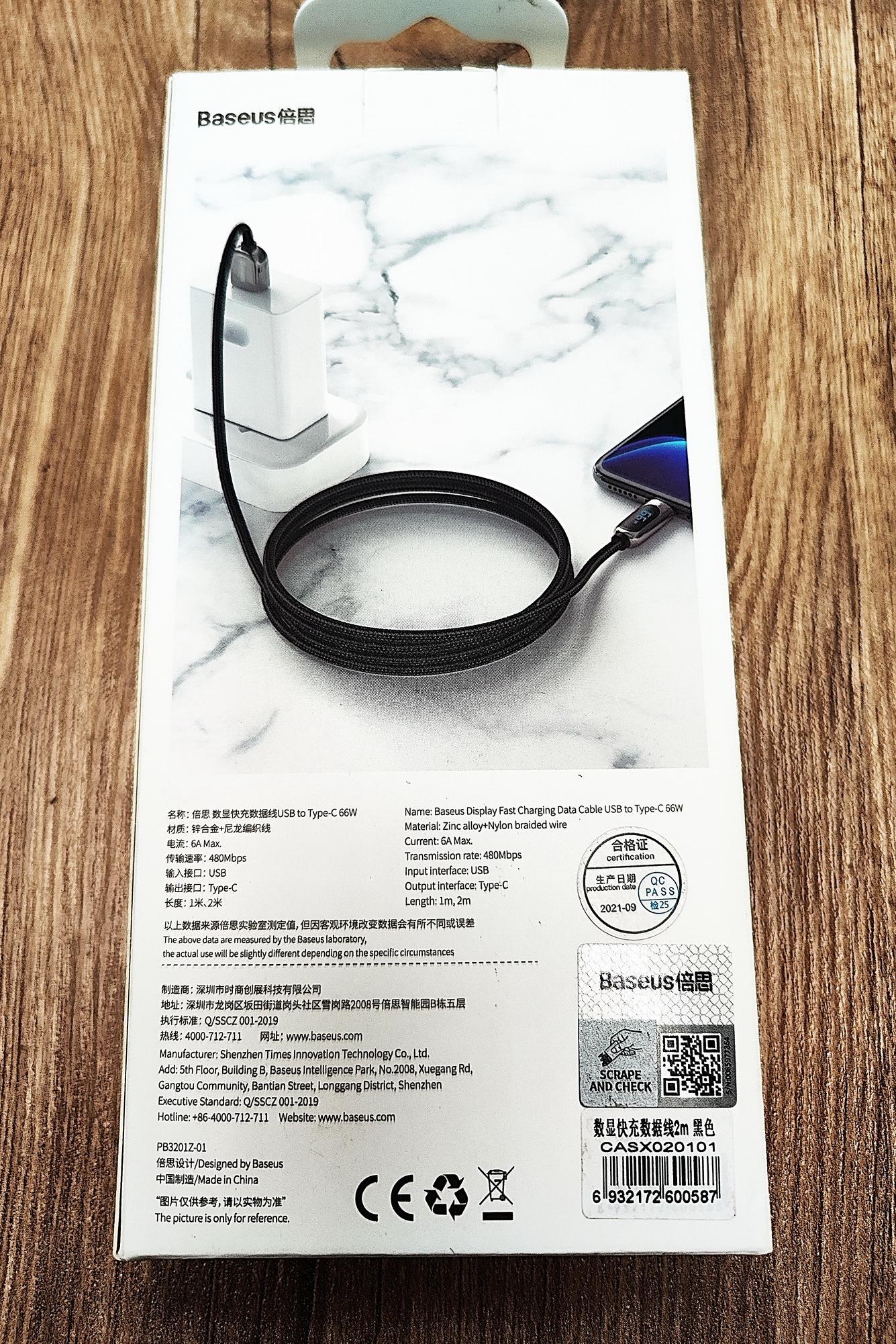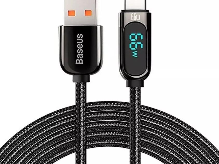 کابل شارژ تایپC برند Basusدارای نمایشگر66 وات 2متر