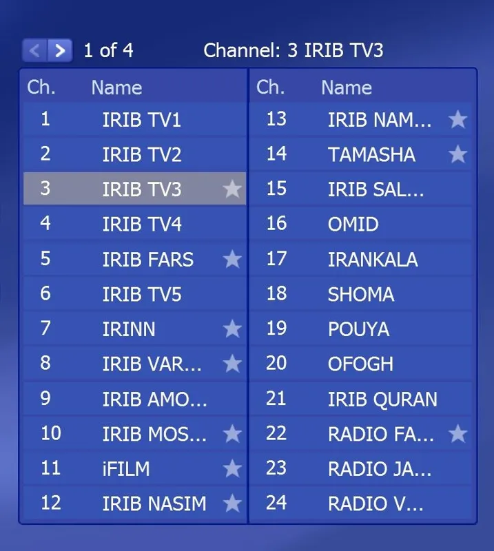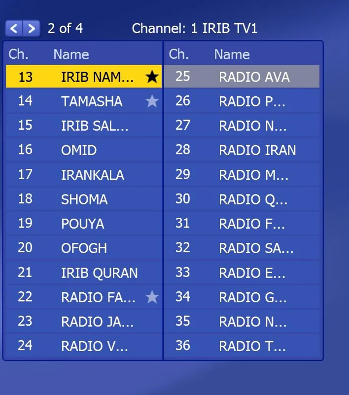 عکس لیست کانالهایی که آورده رو میذارم(کانالهای رادیویی و تلویزیون)