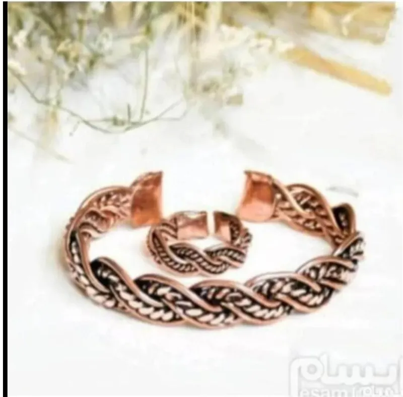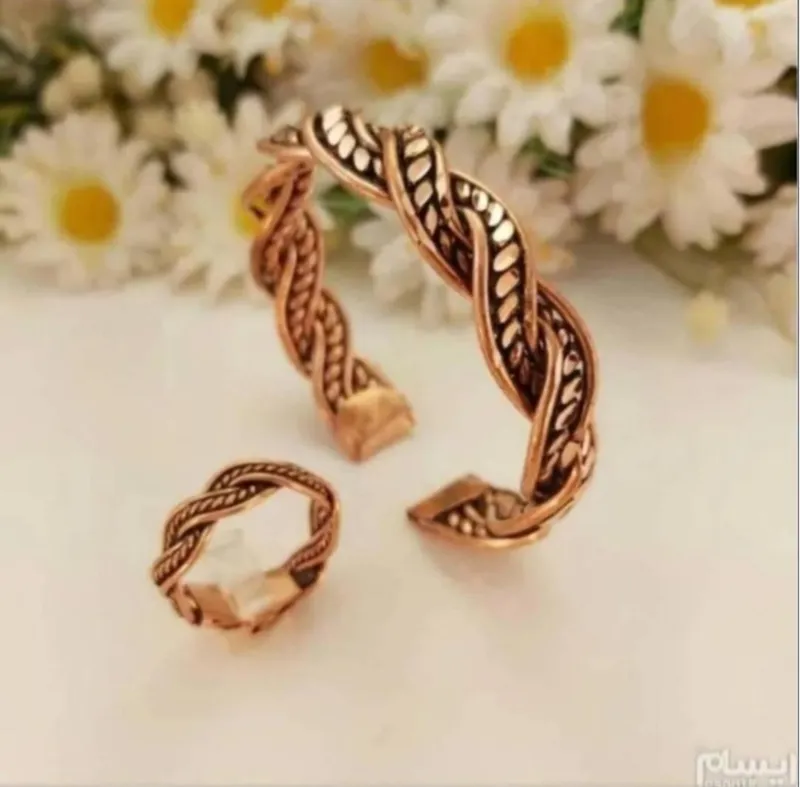 دستبند و انگشتر مسی مدل گیس بافت ،فری سایز