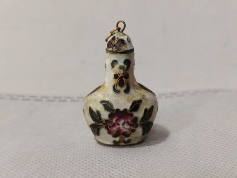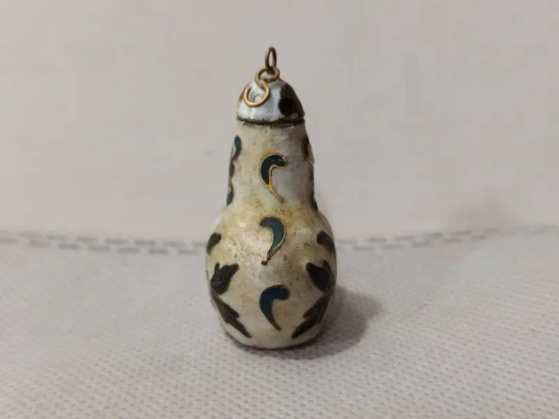 انفیه وعطردان قدیمی تمام میناکاری شده با گلهای قرمز و سبز