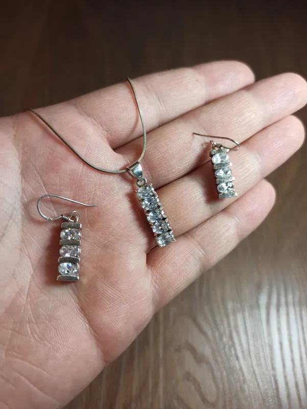 نیم ست زنانه - دخترانه نقره با نگین کاری