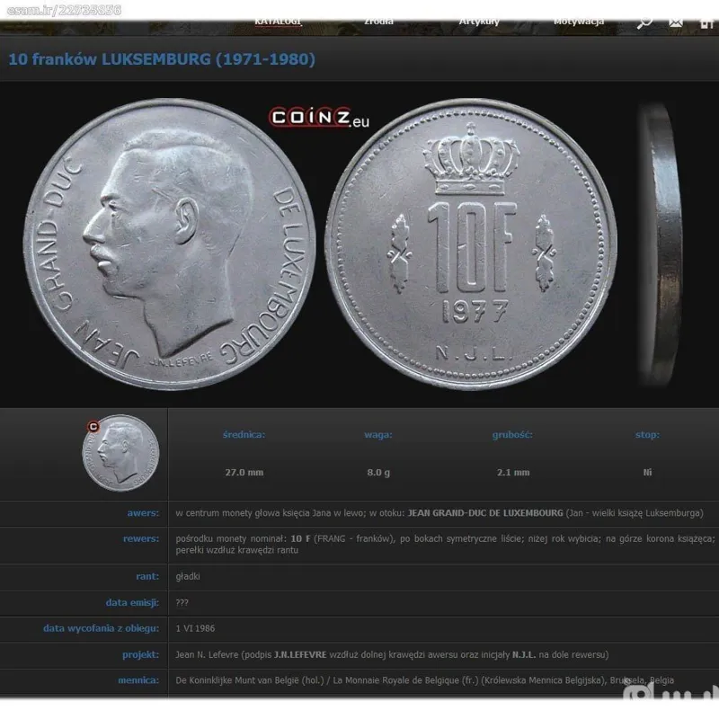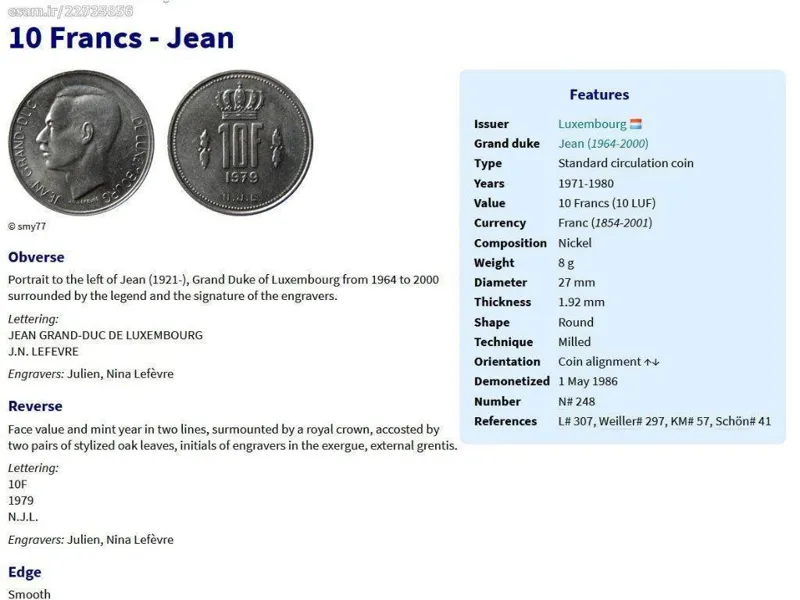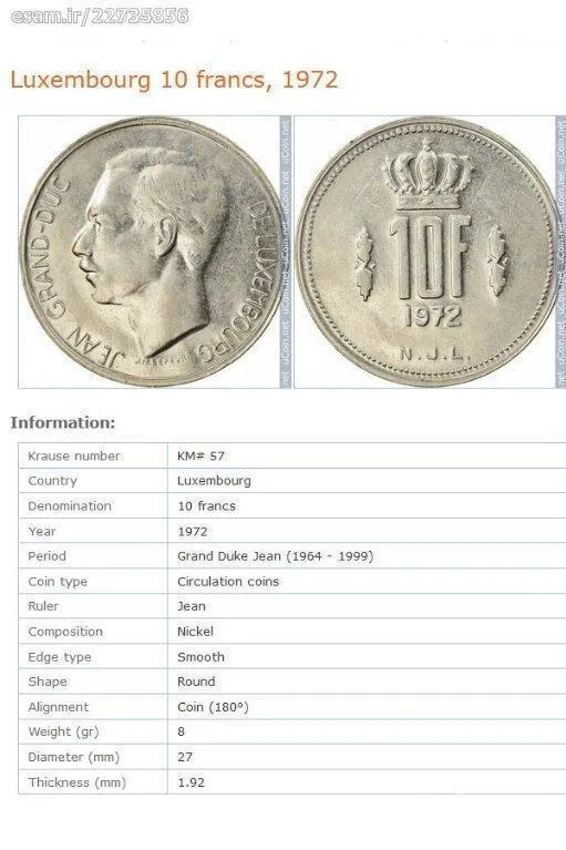 سکه 10 فرانک لوکزامبورگ 1972 (نایاب)