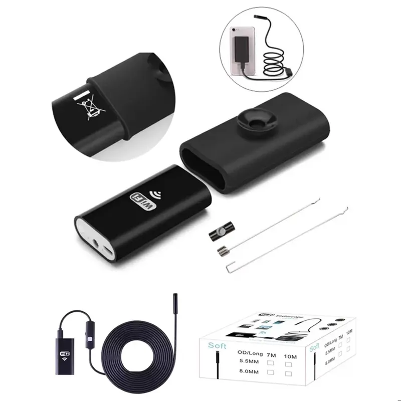 بروسکوپ دیجیتال «QO8-3.5m WiFi»طول کابل 3.5 مترقطر لنز 8 میلی متر - قابل اتصال به موبایل اندروید و آیفون قابلیت عکس و فیلم بر روی موبایل و سیستم کامپیوتر دارای 8 ال ای دی برای نوردهی قابلیت کم و زیاد شدن نور دارای کابل نرم که با تهیه فنر مارپیچ به دور قابل میتوان کابل را جهت دهی کرد