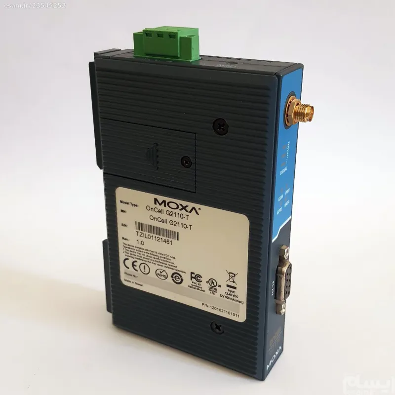 مودم GSM موگزا مدل OnCell G2110 دارای برق مصرفی 12 تا 48 وات از نوع DC می باشد و از پورت RJ45 با سرعت 10/100 مگابیت بر ثانیه و مادگی SMA برخوردار است. این مودم مناسب برای محیط صنعتی بوده و در بازار تجهیزات شبکه با وزن 155 گرم و در ابعاد 27x123x79 میلیمتر به فروش می رسد. مودم موگزا قابلیت پشتیبانی از سیم کارت شبکه 2G را داشته و از سرعت دانلود 85.6 کیلوبات ساعت و سرعت آپلود 42.8 کیلوبات ساعت بهره می برد. این مودم صنعتی دارای دمای کاری 0 درجه تا 55 درجه سانتی گراد و دمای ذخیره سازی 40- درجه تا 75 درجه سانتی گراد بوده و از استاندارد پورت سریال RS-232 برخوردار است. مودم صنعتی مدل OnCell G2110 قابلیت ارسال و دریافت پیام کوتاه را داشته و از 4 باند فرکانس 850/900/1800/1900 مگاهرتز و پروتکل AT Commands بهره می برد.