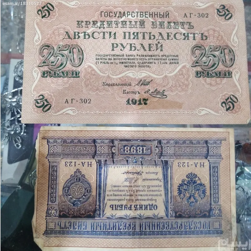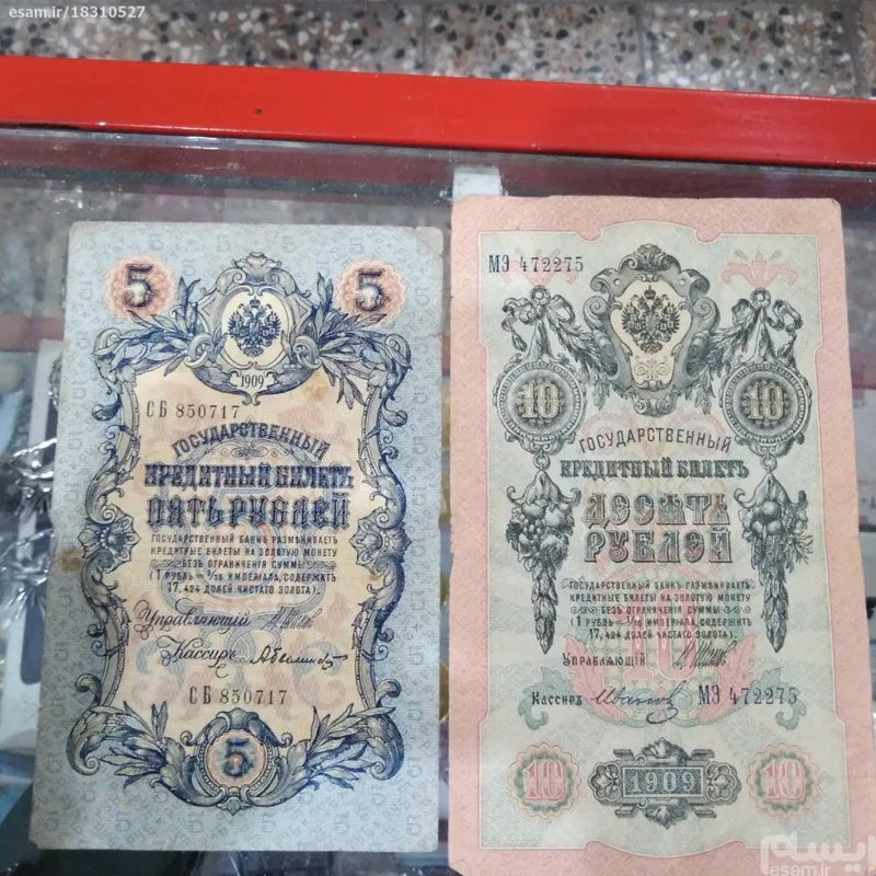 870برگ اسکناس روبل تزار روسیه. کیفیت معمولی متوسط خوب تعداد در بسته ها مختلف هست در چندین مدل اگر مختلف بخواهید هم تعداد 100به بالا میدهم ولی250روبل برگی250هزار تومان هست بقیه برگی 150هزار. قبل از خرید مدل اسکناس را اعلام بفرمایید 5روبل ...3روبل ....1روبل...10روبل ...250 روبل .اشانتیون خرید هم میدهم اگر یک جا خرید کردید