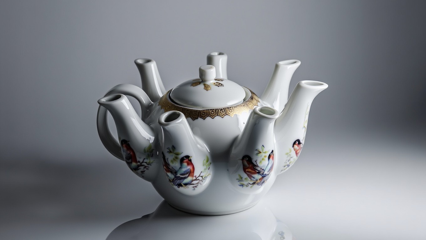 قوری چینی دکوری 7 لوله با نقش پرنده کاملا نو و زیبا.