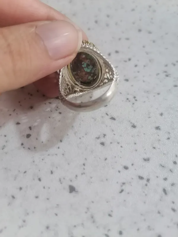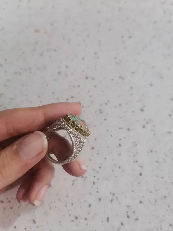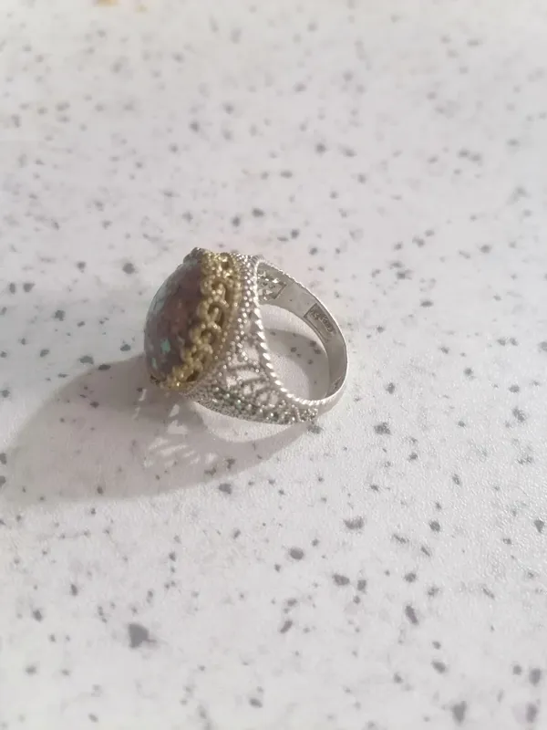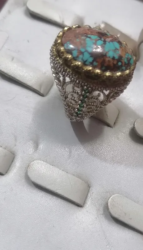 انگشتر فیروزه نیشابور رکاب نقره کله برنجی. طرح مخراج بغل رکاب سبک و عالی