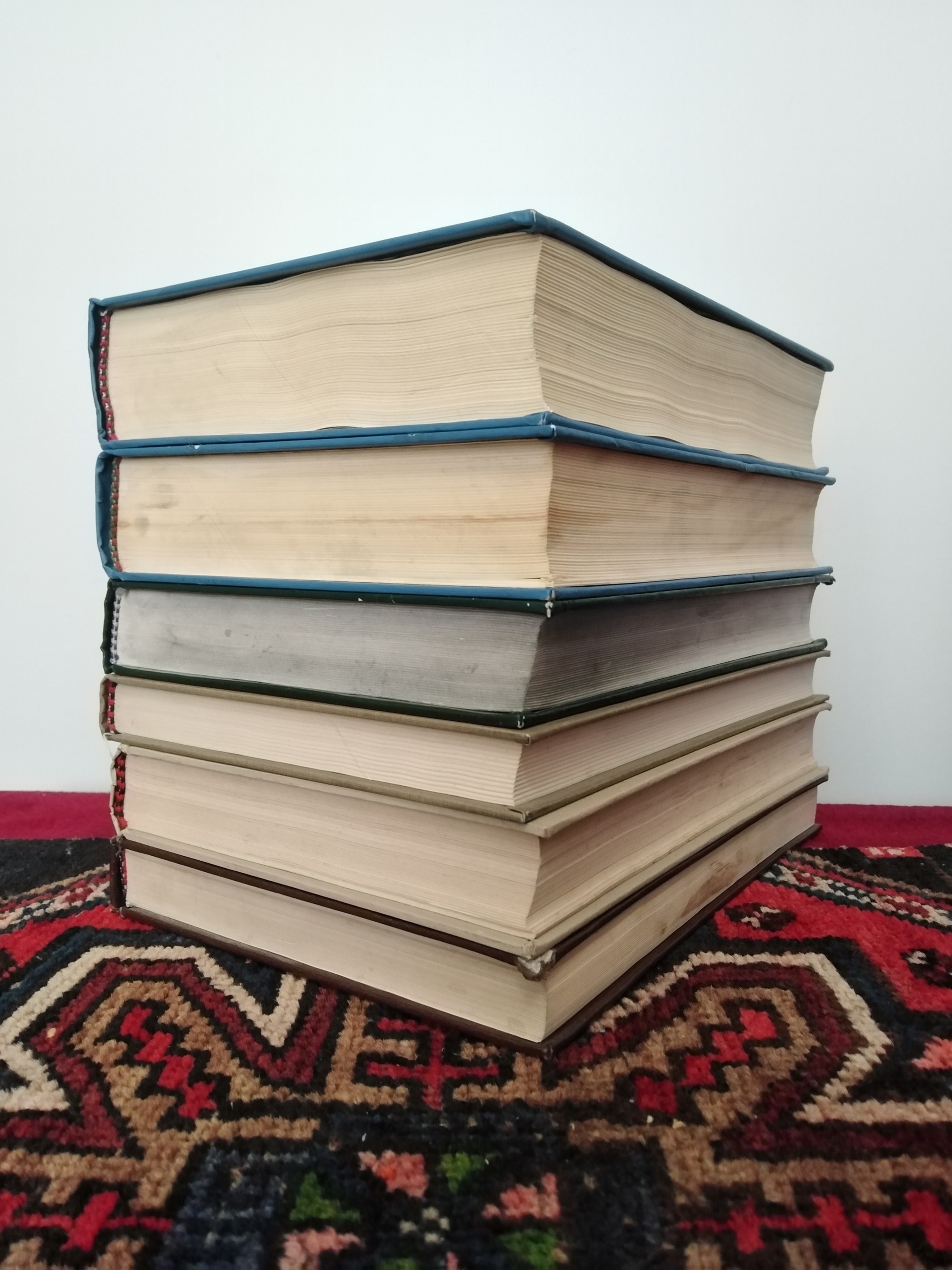 کتابها از نظر کیفیت و سلامت عالی هستند. کاغذ عالی، چاپ عالی و صحافی عالی. جلد دو سه تا از مجلدات زدگی (در حد سر سوزن) داشت که عکس آن هم برای عزیزانی که خیلی حساس هستند گذاشته شد که بهتر تصمیم بگیرند.