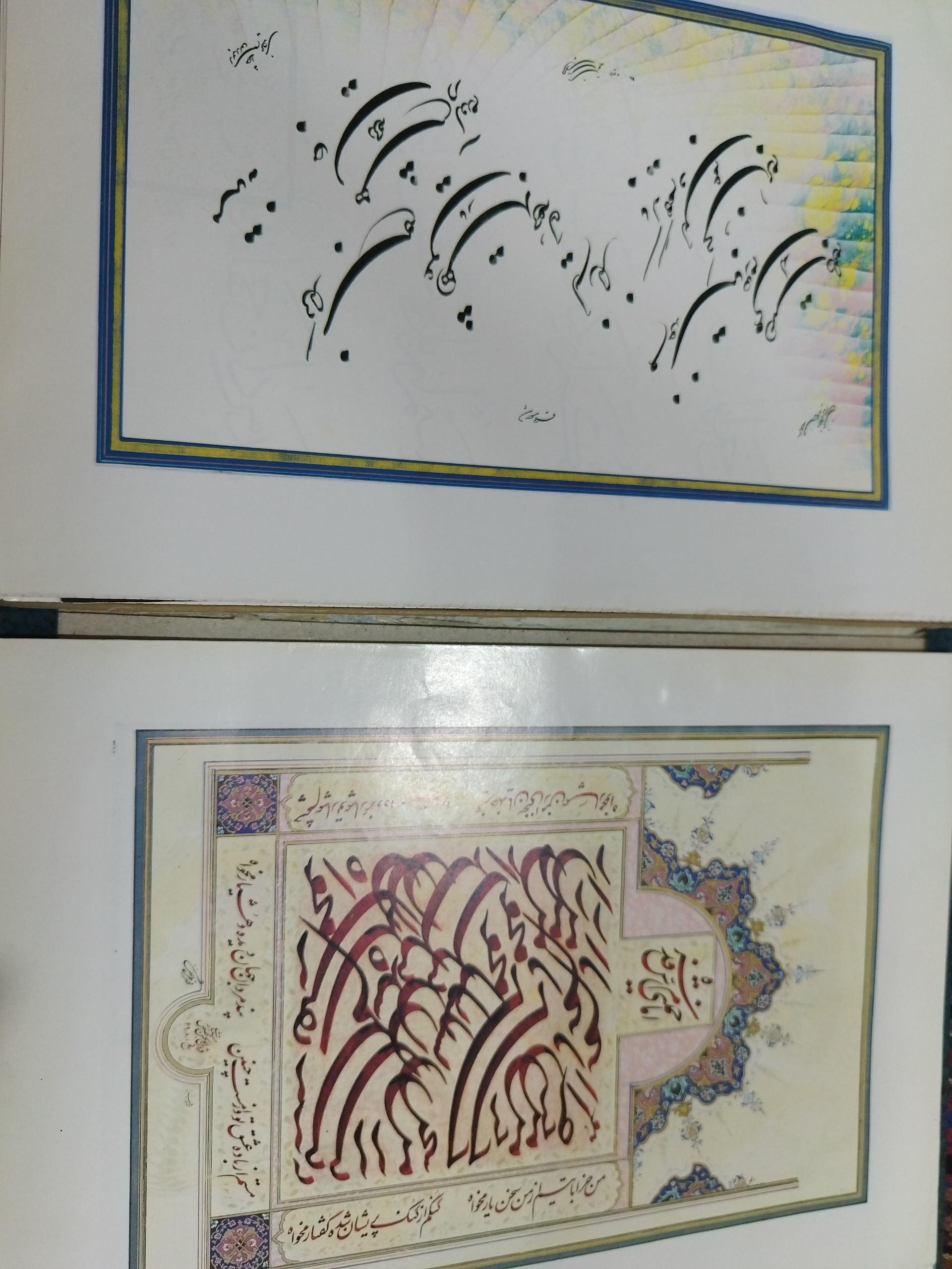1 کتاب شامل 30 اثر خوشنویسان قزوین که صفحاتش جدا شده.