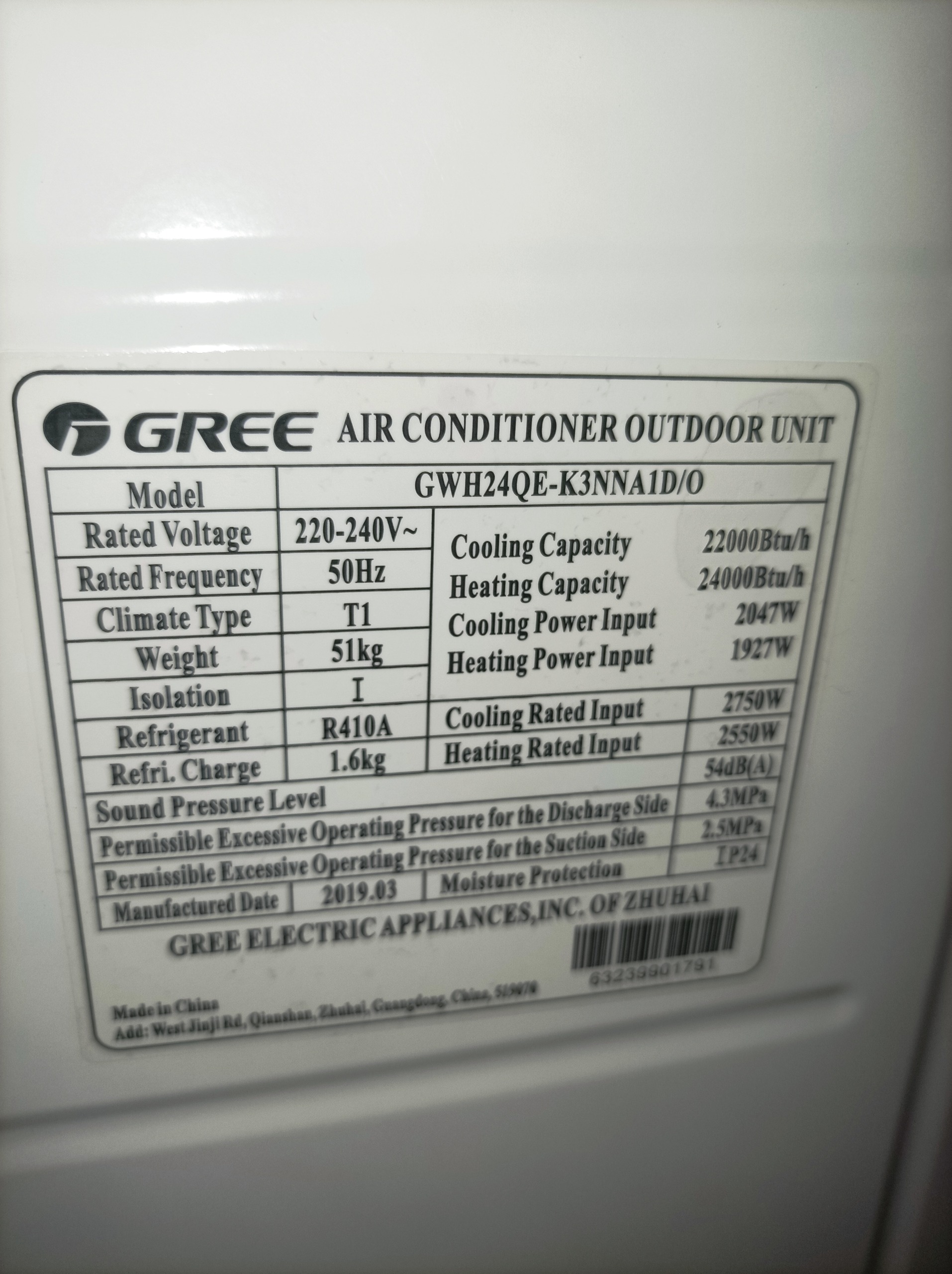 یک عدد اسپیلت 24 هزار گری مدل GWH24QE