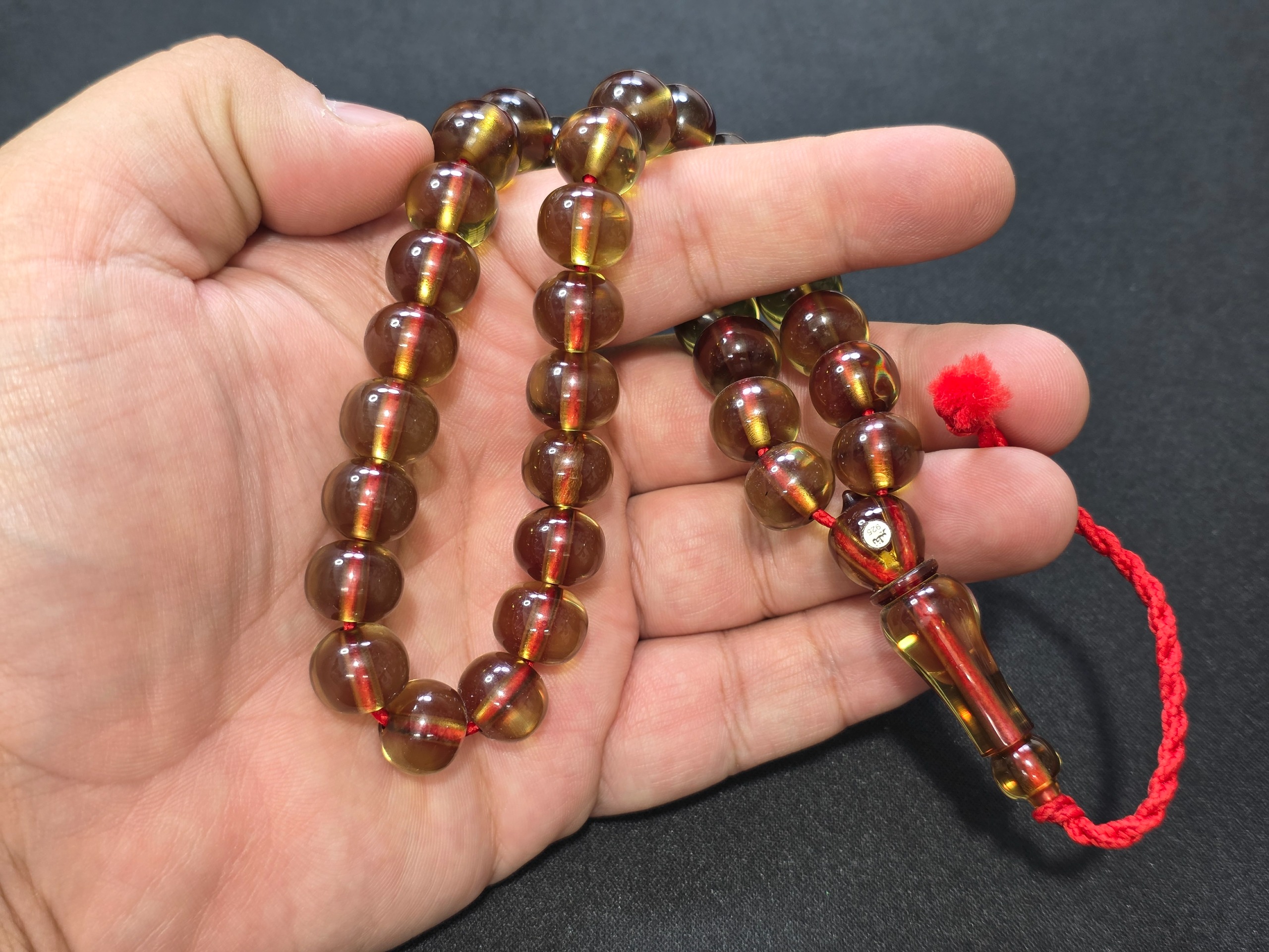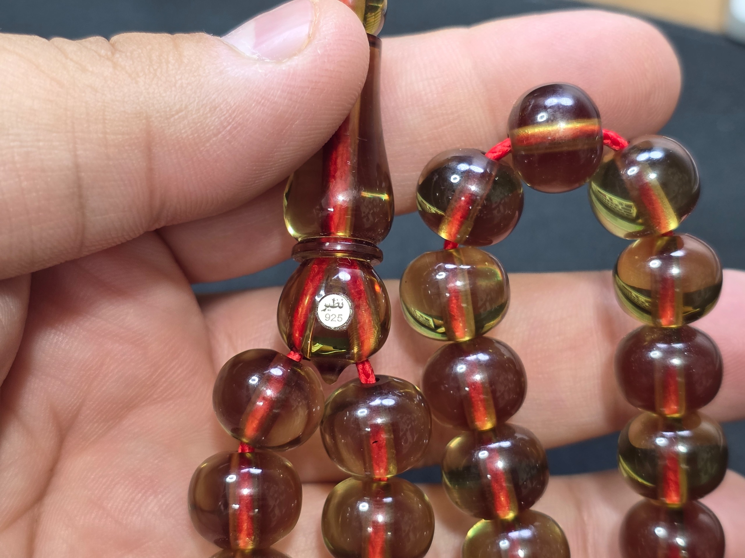 تسبیح سندلوس آب حیات زرافشان ناب آلمان درجه یک با مهر نقره کوب 925 سازنده استاد نظیر بسیار منحصر به فرد و کمیاب مهر نقره کوب 925 استاد نظیر که روی هر تسبیحی میاد فقط 3 الی 5 میلیون قیمت اون تسبیح رو بالا میبره