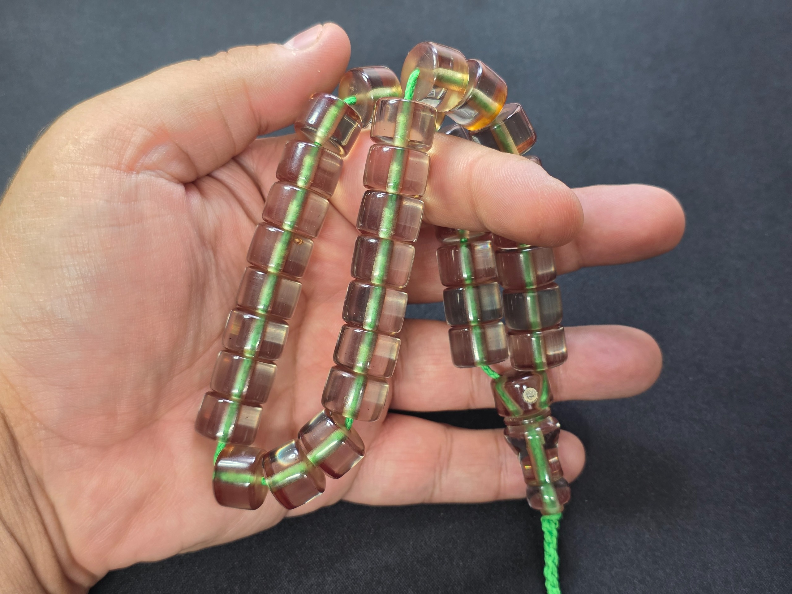 تسبیح سندلوس آب حیات زرافشان زغال دار ناب آلمان درجه یک با مهر نقره کوب 925 سازنده استاد نظیر بسیار منحصر به فرد و کمیاب مهر نقره کوب 925 استاد نظیر که روی هر تسبیحی میاد فقط 3 الی 5 میلیون قیمت اون تسبیح رو بالا میبره