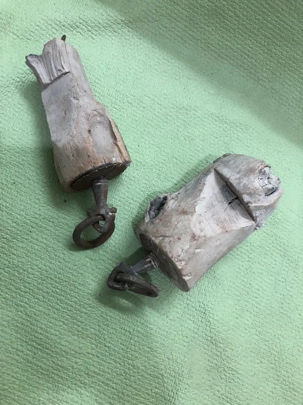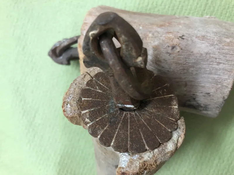 توضیحات تکمیلی: دو عدد میخ حلقه دار قدیمی، داخل چوب قدیمی