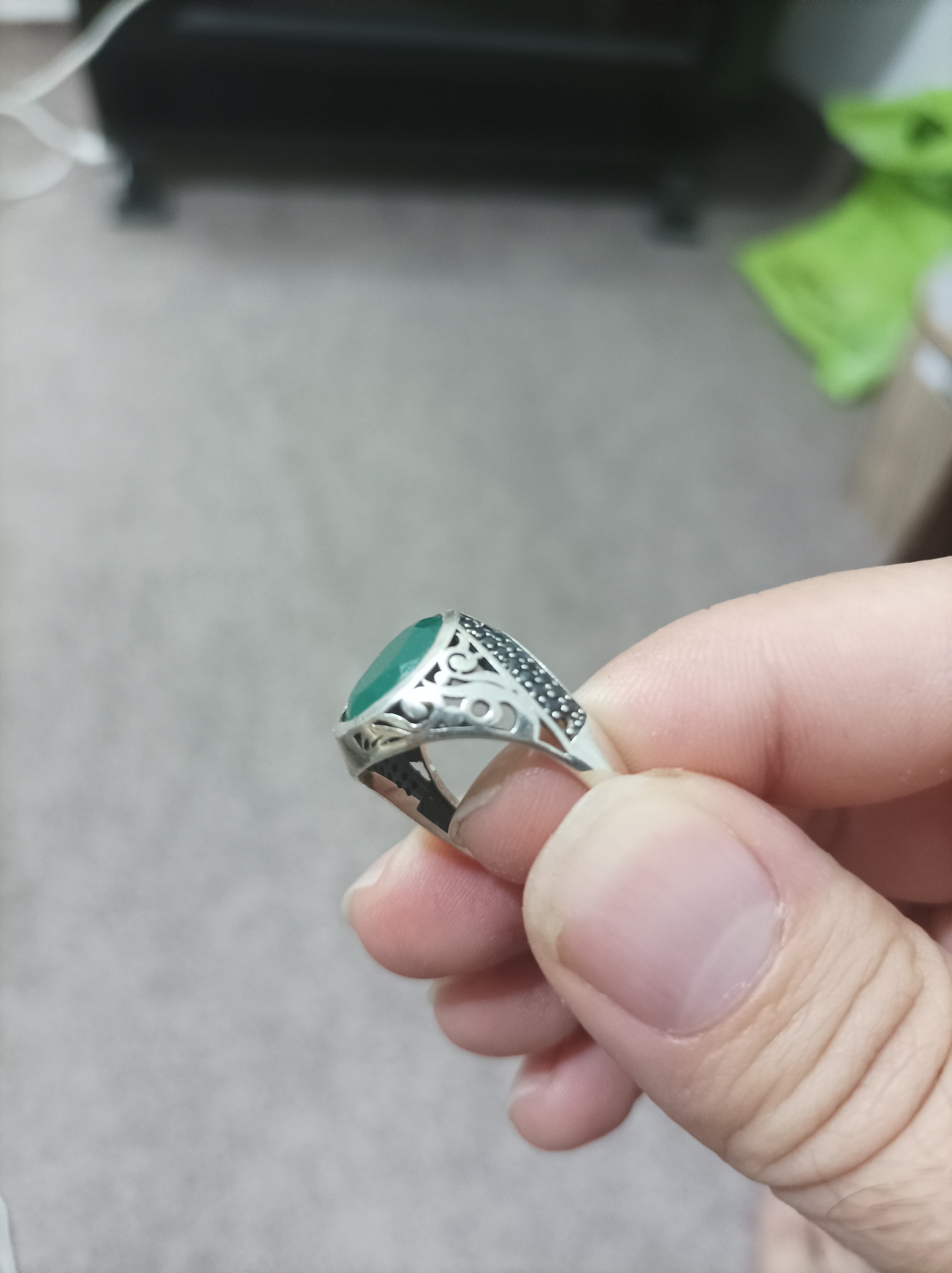 انگشتر زمرد هندی با رکاب نقره