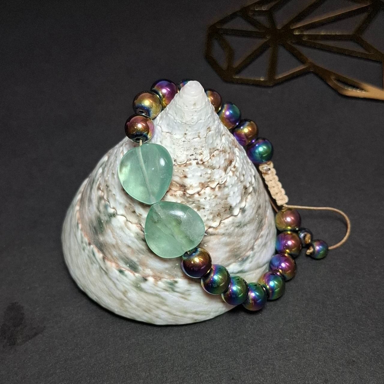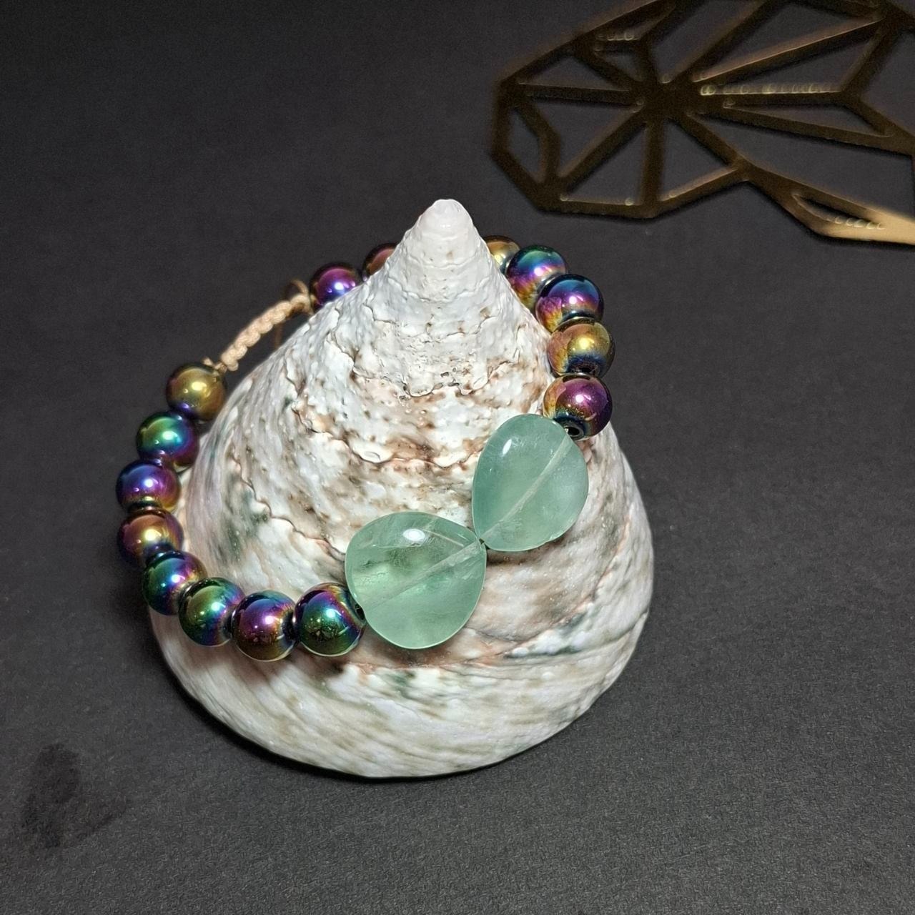 دستبند با مهره های سنگ فلورین و حدید معدنی