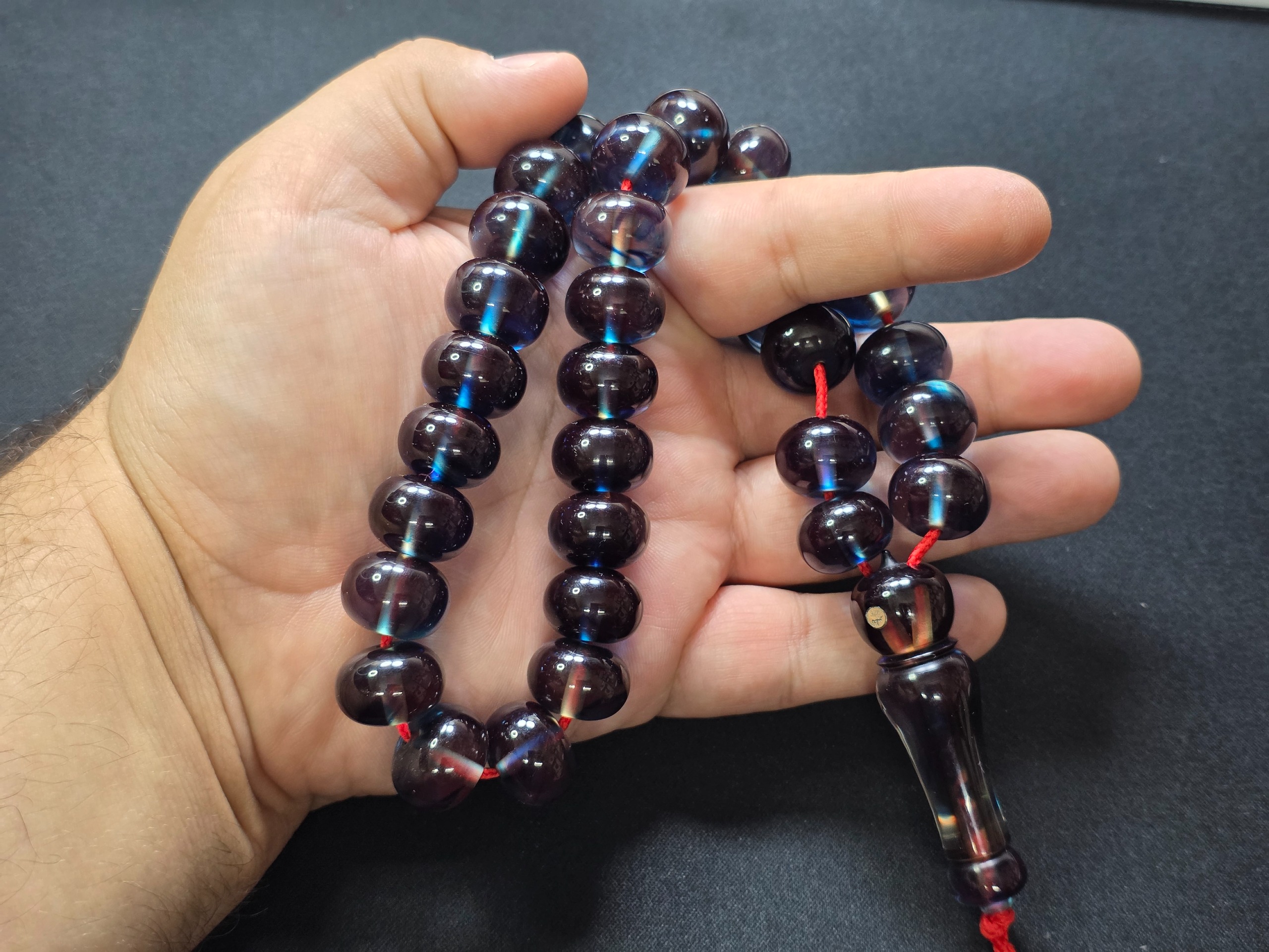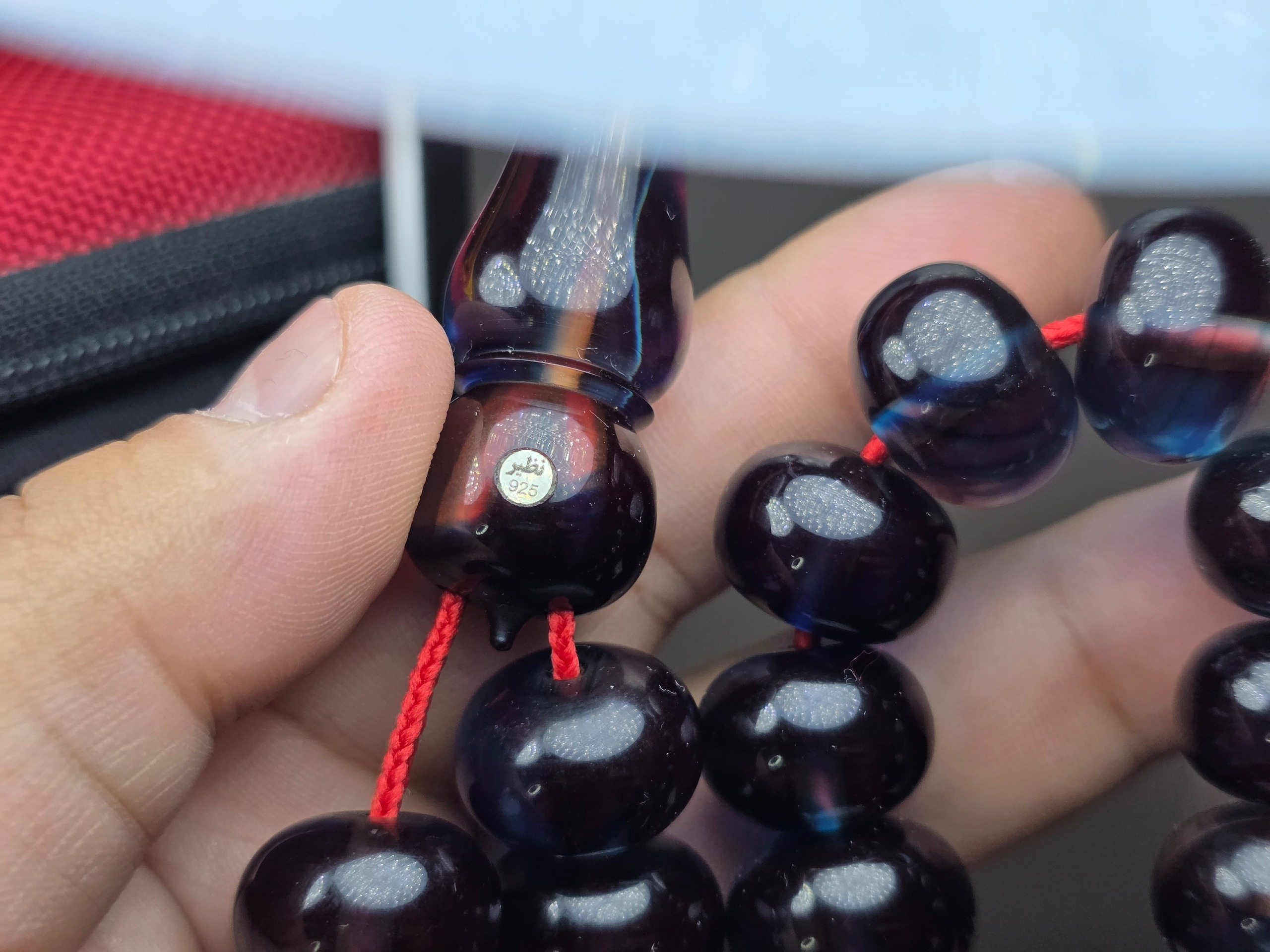 تسبیح دانه درشت و غولپیکر سایز 18کهربای پرچمی زرافشان ناب لهستان درجه یک با مهر نقره کوب 925 سازنده استاد نظیر بسیار منحصر به فرد و کمیاب مهر نقره کوب استاد نظیر که روی هر تسبیحی بیاد فقط 3 الی 5 میلیون قیمت اون تسبیح رو بالا میبره