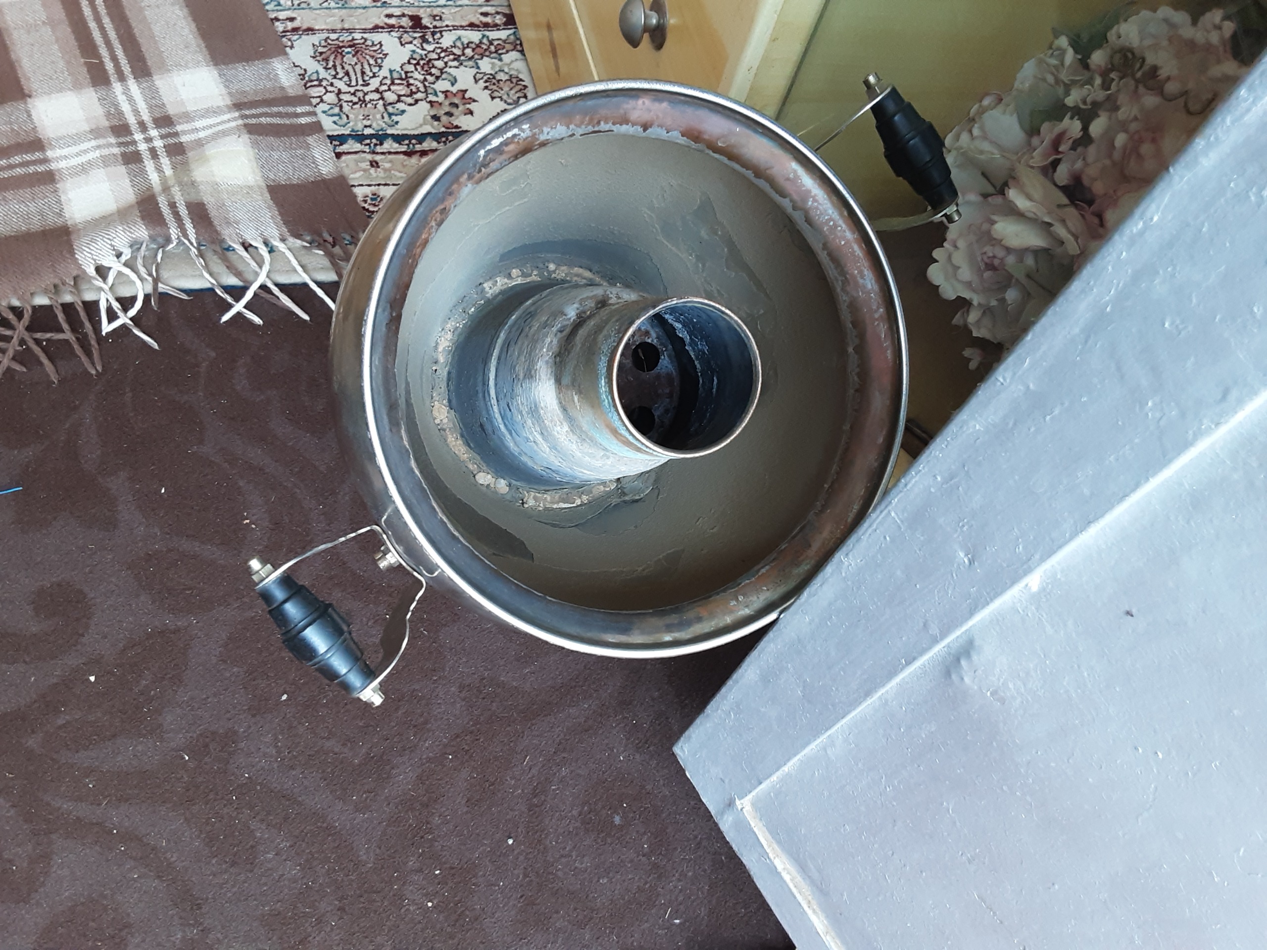 سماورگازی 6لتری دست دوم تمیزکمکاروزن سنگین ورق زخیم درضمن ناگفته نمانددرقصمت بالای لوله باخط قرمزمشخص کردم که من احساس می کنم سوراخ بوده جوش دادن یاچسبوندن خلاسه من گفتم که مدیون نباشم ولی الان سوراخ نیست وآب کردم نمی ریزد باتشکر