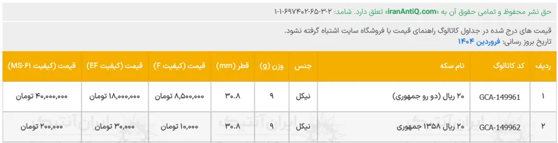 سکه بانکی 20 ریال 1358 جمهوری (4 عدد)