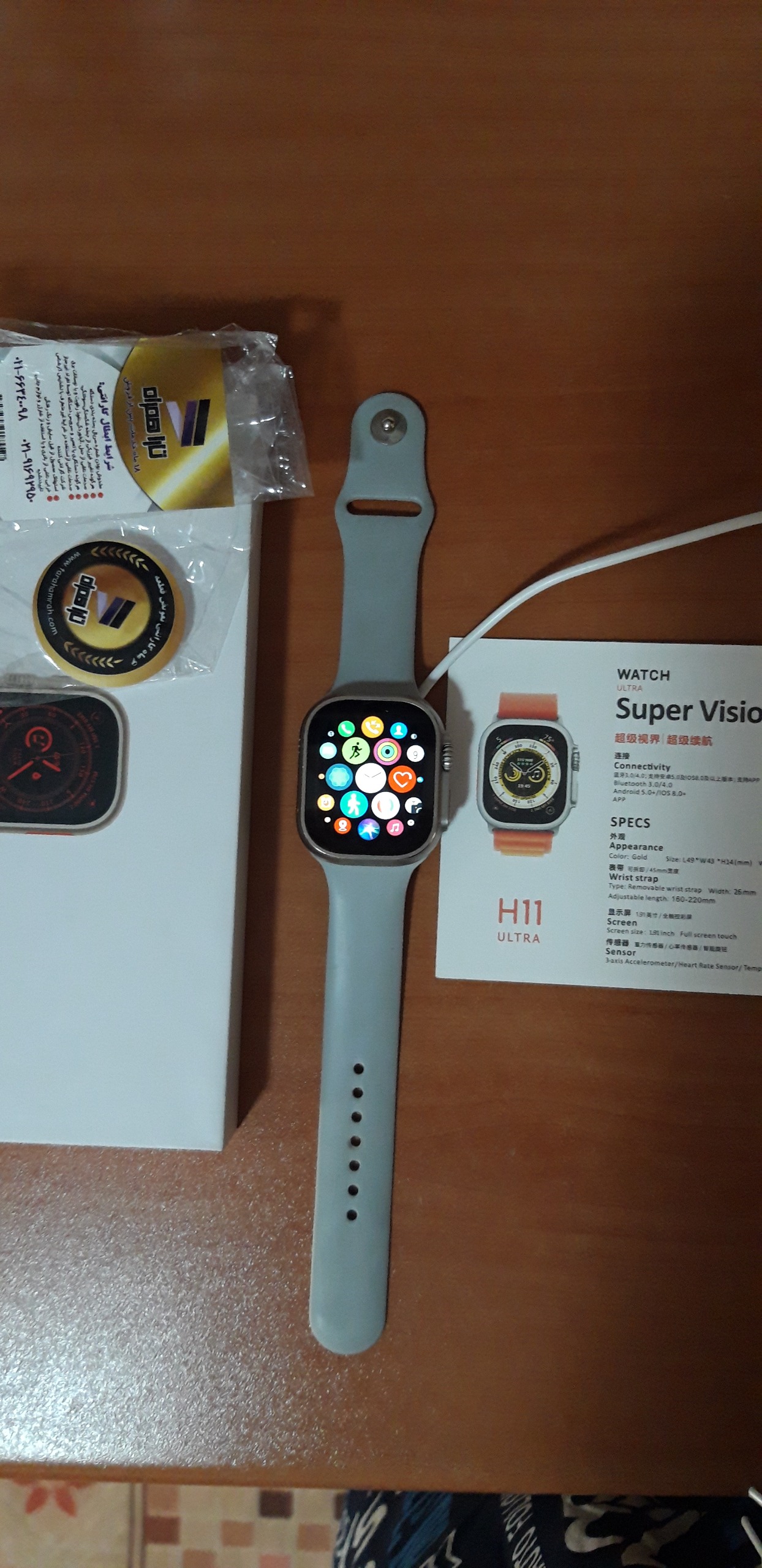 دارای بند سیلیکونی طوسی قابل تعویض جعبه و دفترچه و کابل شارژر
