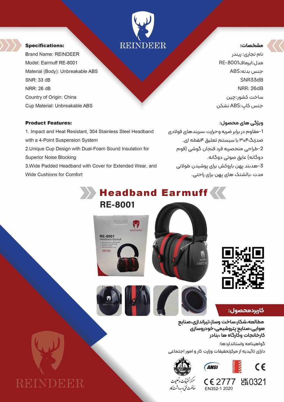 گوشی ایرماف صداگیر REINDEER-RE8001 (دارای تاییدیه وزارت کار)