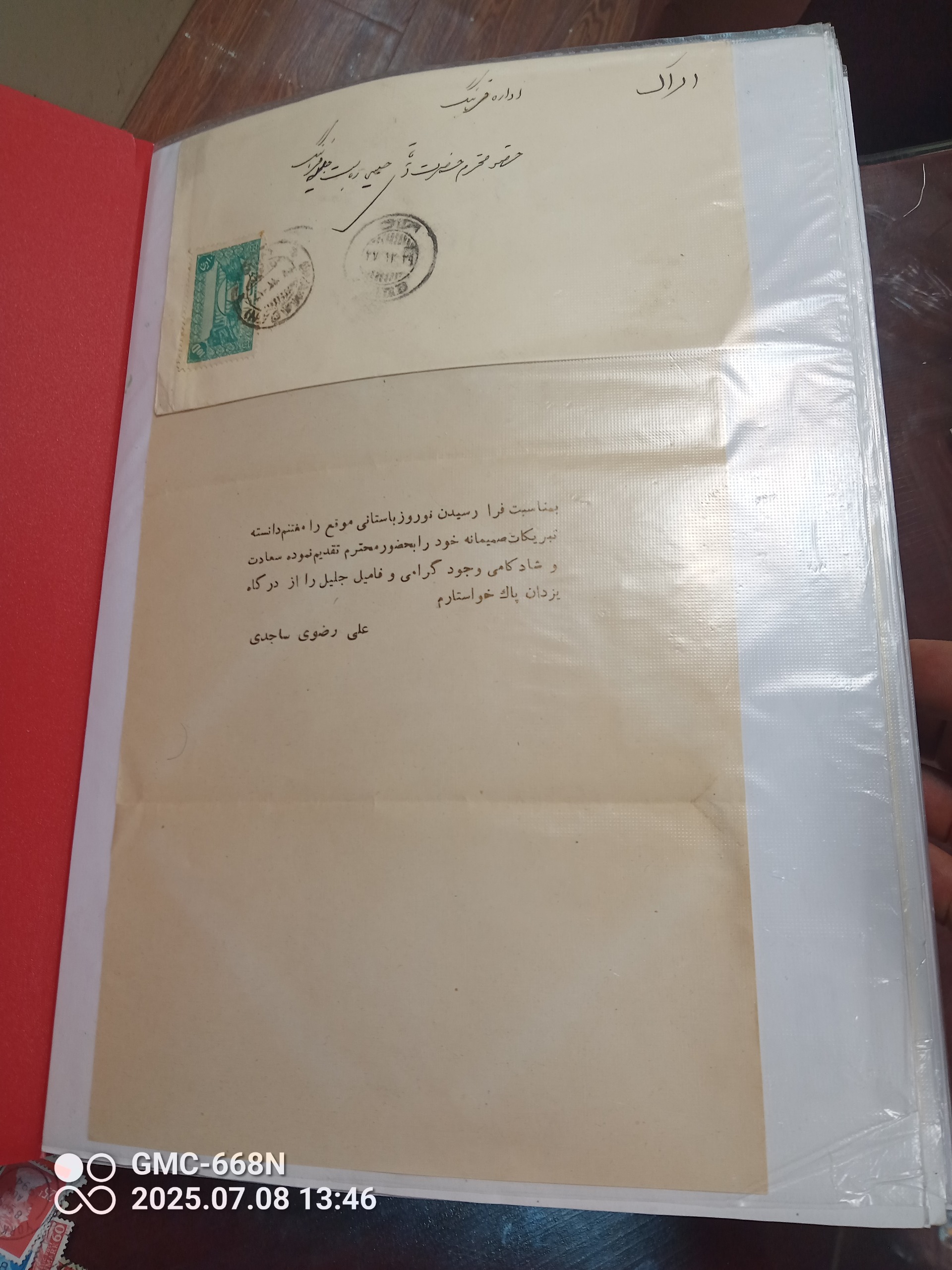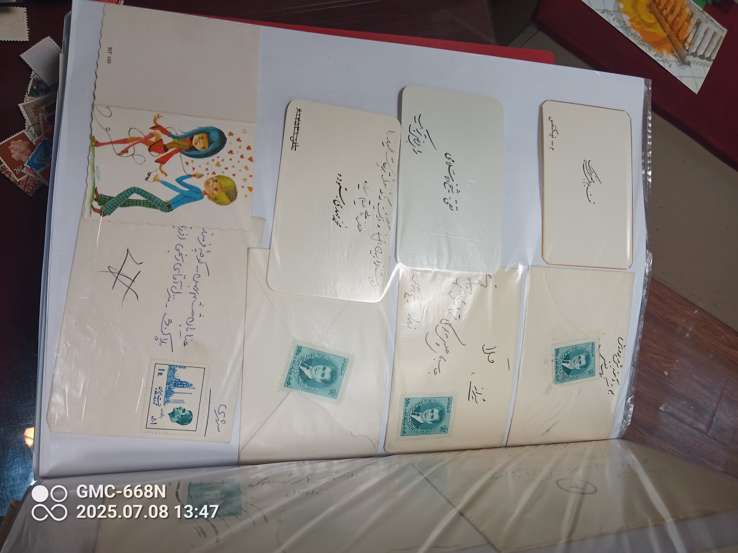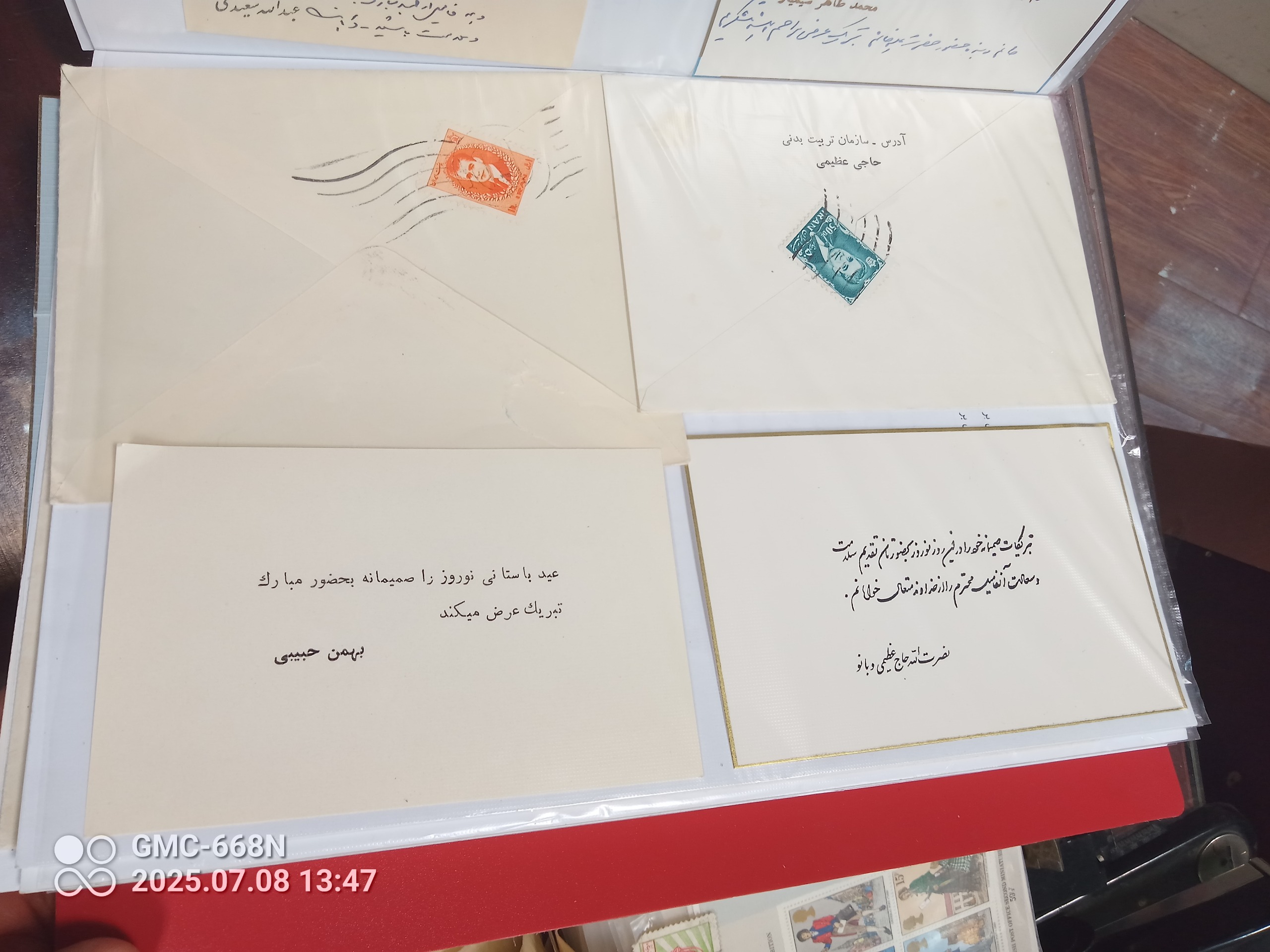 باعرض سلام دریک جلد آلبوم صدبرگ پاپکو a4 بنام دونفر ارسال شد جناب آقای حبیبی ازسلل1325تا1350اکثراکه در بعضی پاکتها بنام مشاور وزیر اسم بردن ازایشون...و تعدادی هم بنام مهندس ارفع ضمنا تعدادی پاکت نامه هم بنام جناب حبیبی دارم تقریبا 600پاکت که جدا فروخته میشه و تعدادی هم مهندس ارفع