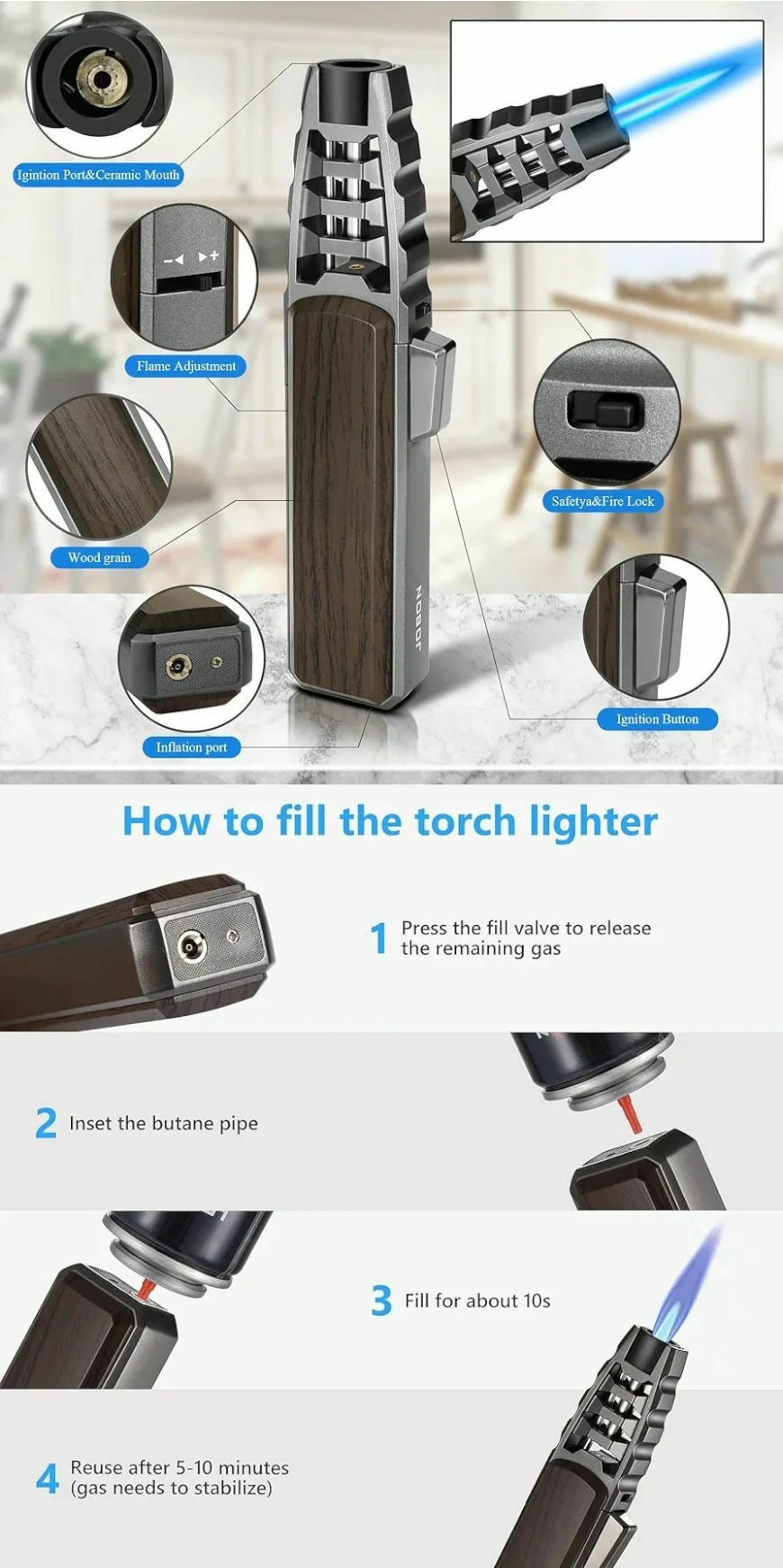 فندک اتمی JOBON مدل TURBO JET با شعله بزرگ و قدرتمند، بهترین همراه برای درست کردن آتش در شرایط سخت آب و هوایی در کمترین زمان ممکن. مناسب جهت تعمیر جواهرات، طبخ و آشپزی، سفر و کمپینگ.