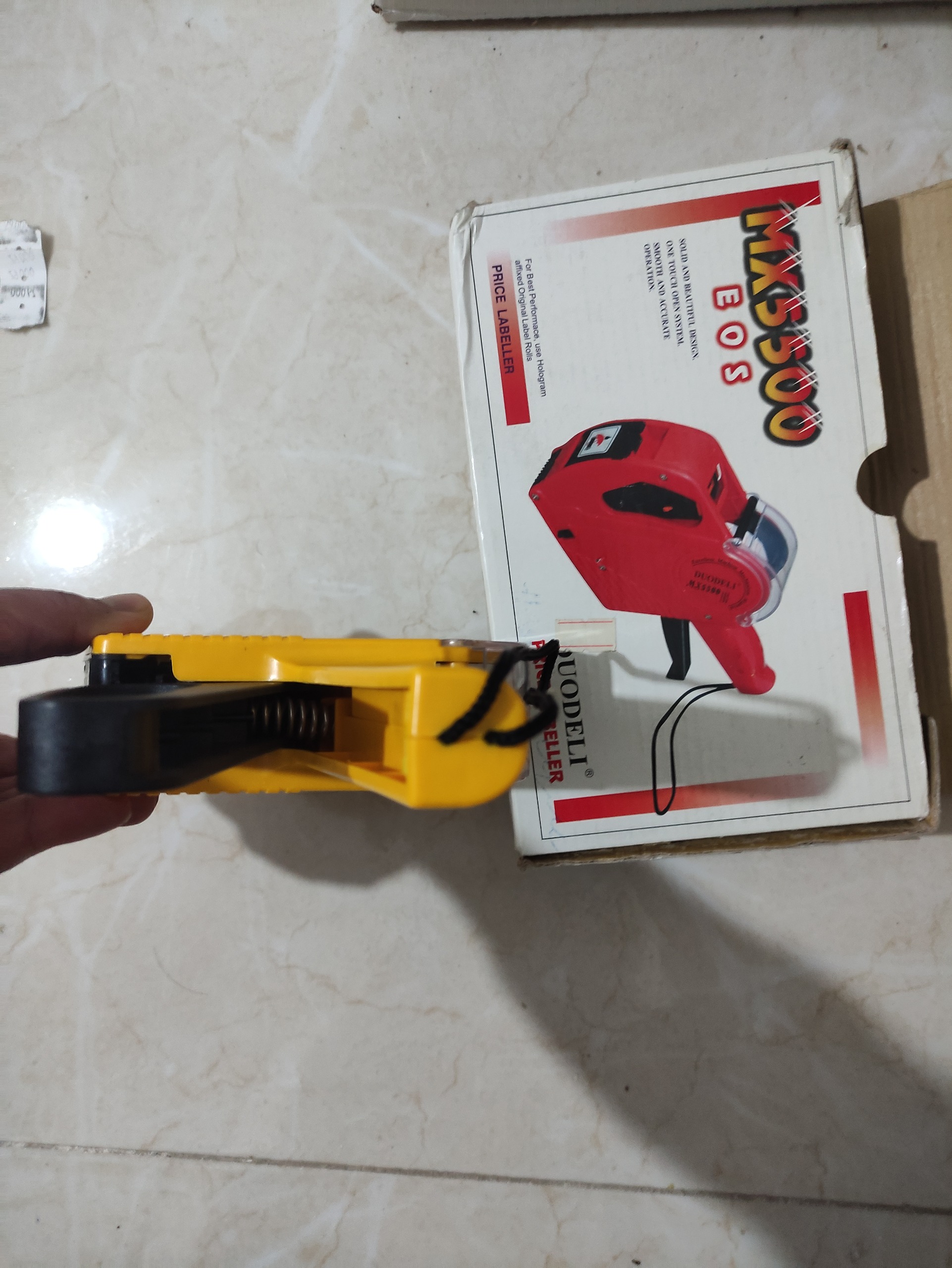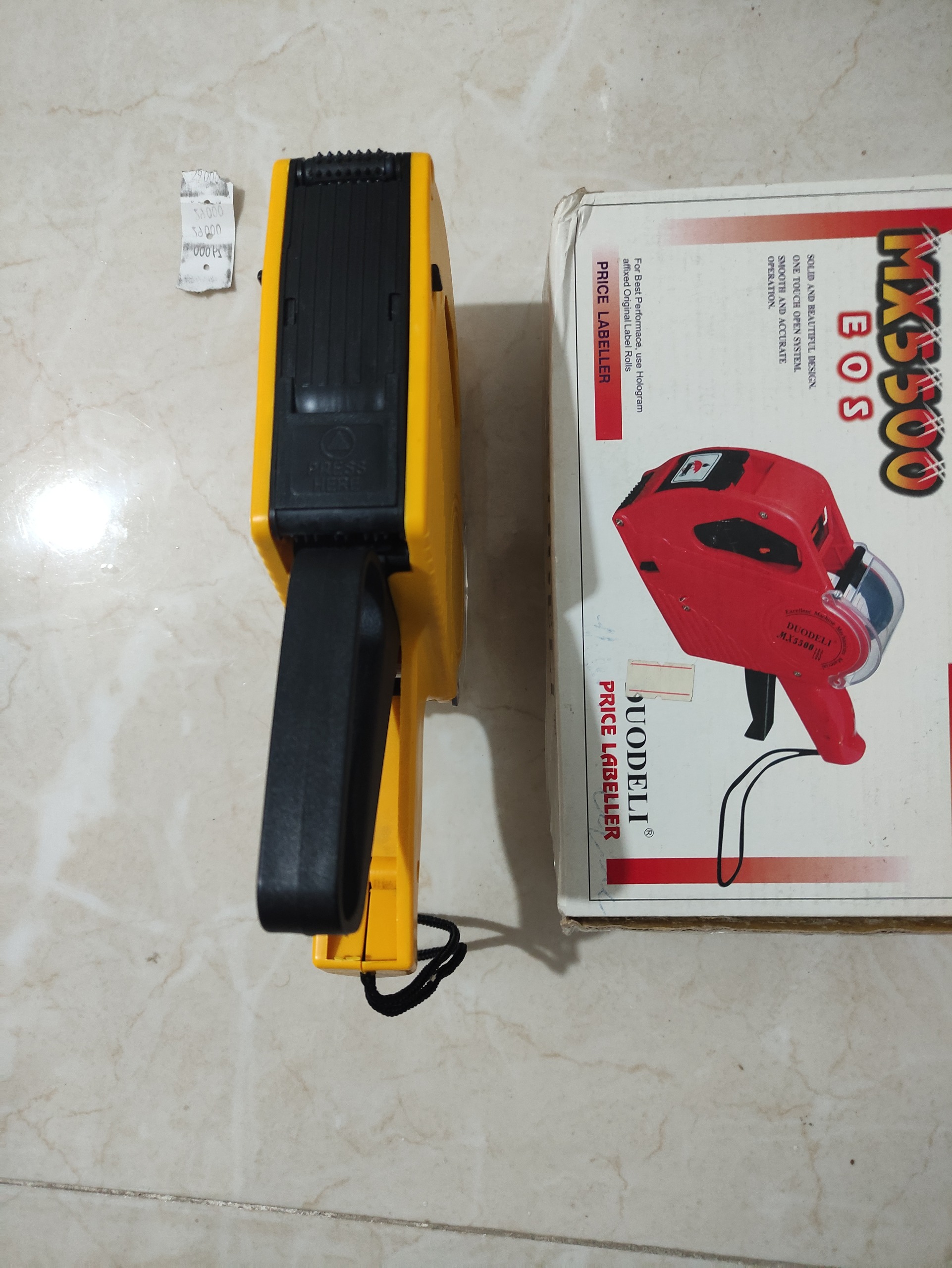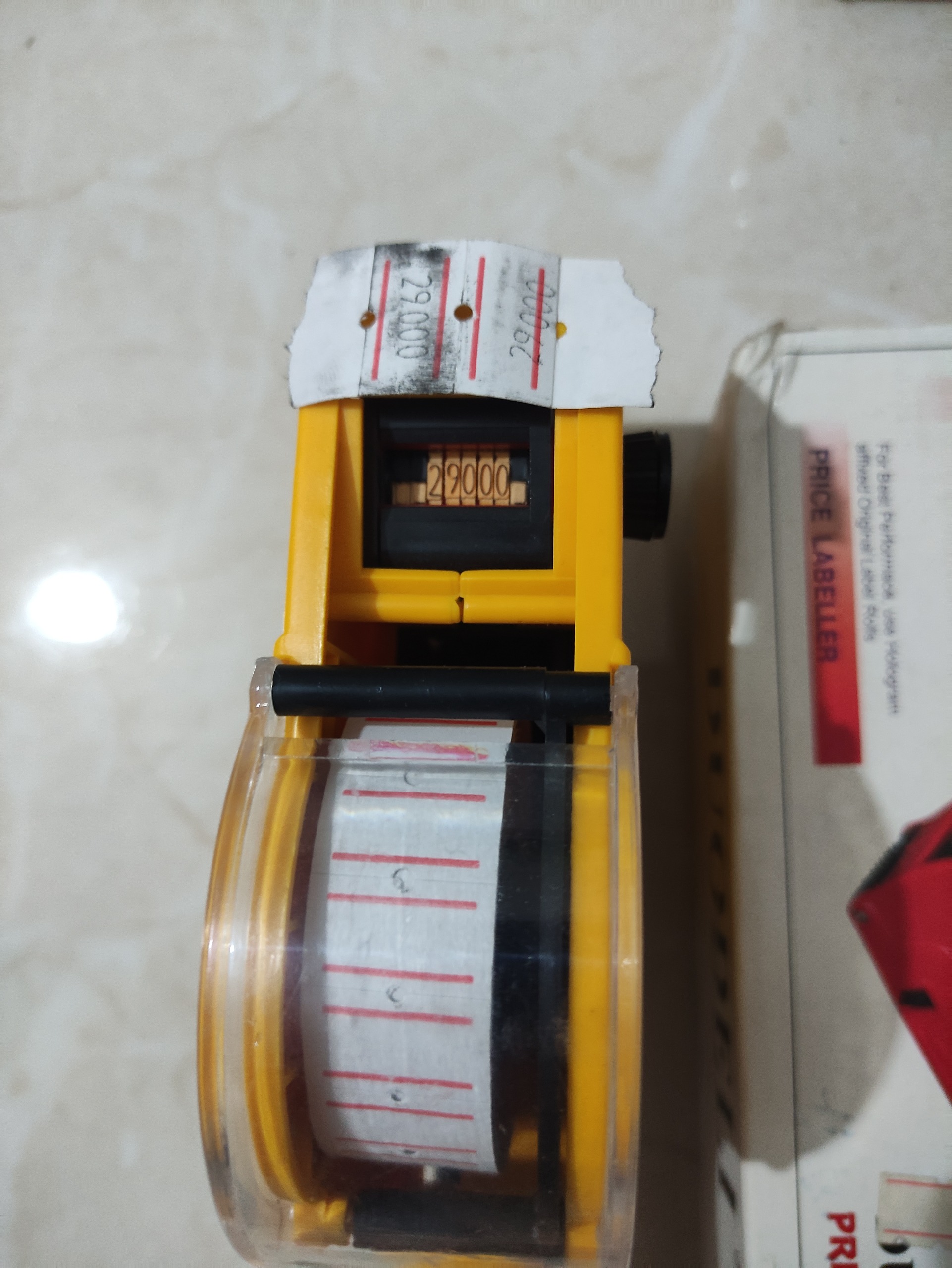 این لیبل زن نو هست فقط اومدم نوار لیبل رو جایگزا ی کنم یک چیزی از تنظیم خارج شده و لیبل کنده حالا یک نفر که کارش این کار باید اینو تنظیم کنه یا با باز کردن بدنه یا کاری که لازم انجام بده شاید کالا کن باهاش 20 تا لیبل زدم نه بیشتر جعبه اینها از اول قرمز بود داخلش زرد قیمت اون از 599 تا 799 هست من زدم 499که ایرادی رو بدین کسی که وارد هست برطرف کنه خودتون نمیتونید منم دست نزدم که مشکلی نشه