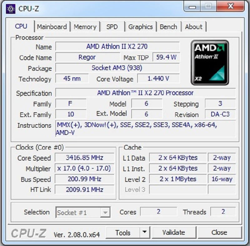 مشخصات فنی پردازنده AMD Athlon II X2 270