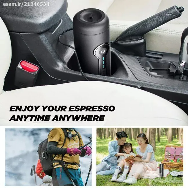 دستگاه اسپرسوساز قابل حمل تمام اتوماتیک ایمنس (IMONS) می تواند آب را گرم کند، این قهوه ساز ایتالیایی برای قهوه آسیاب شده، قابل شارژ 12 ولت، استفاده بی سیم، خود تمیز شونده برای کمپینگ خودرو در داخل و خارج از خانه، پیاده روی ماهیگیری و ... دستگاه اسپرسو قابل